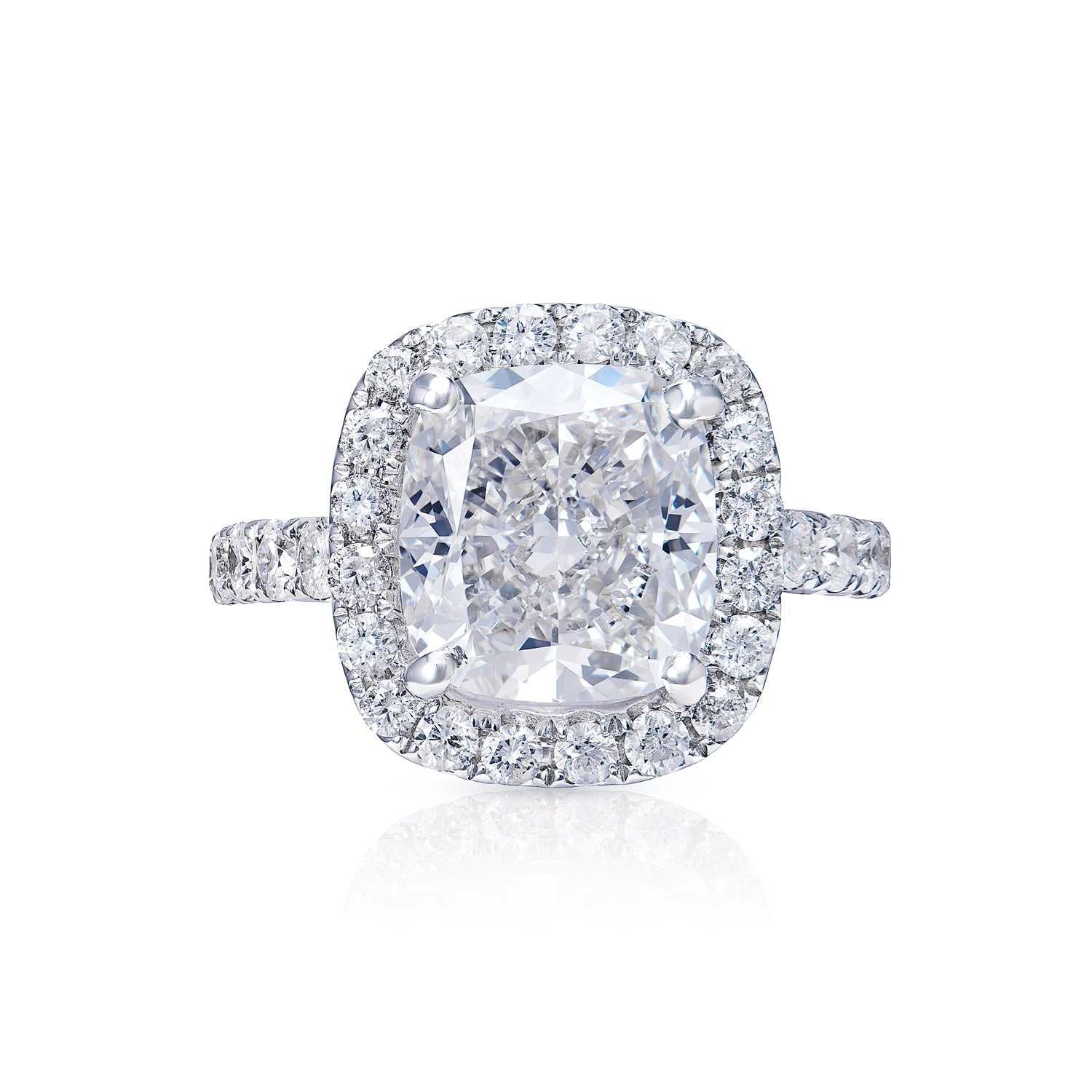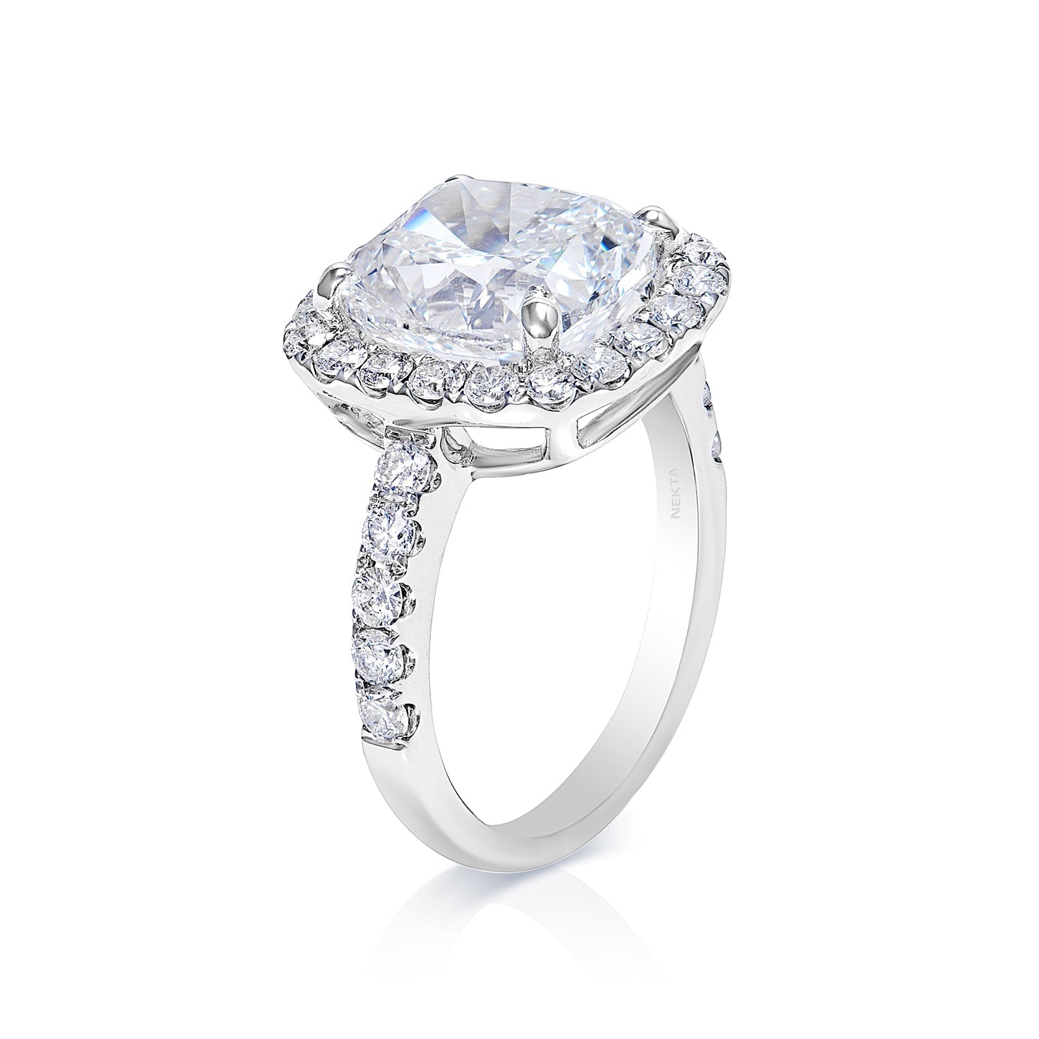 Remi 6 Carat G Internally Flawless Cushion Cut Diamond Engagement Ring in 18k White Gold. GIA Certified 5Ct G IF