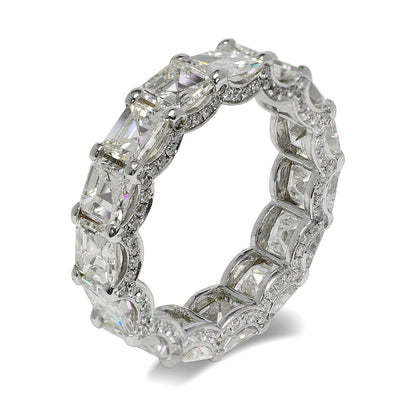 SER 8 Carat Asscher Cut Diamond Eternity Band in 18K White Gold Micro Pave Prong 50 pointer By Mike Nekta