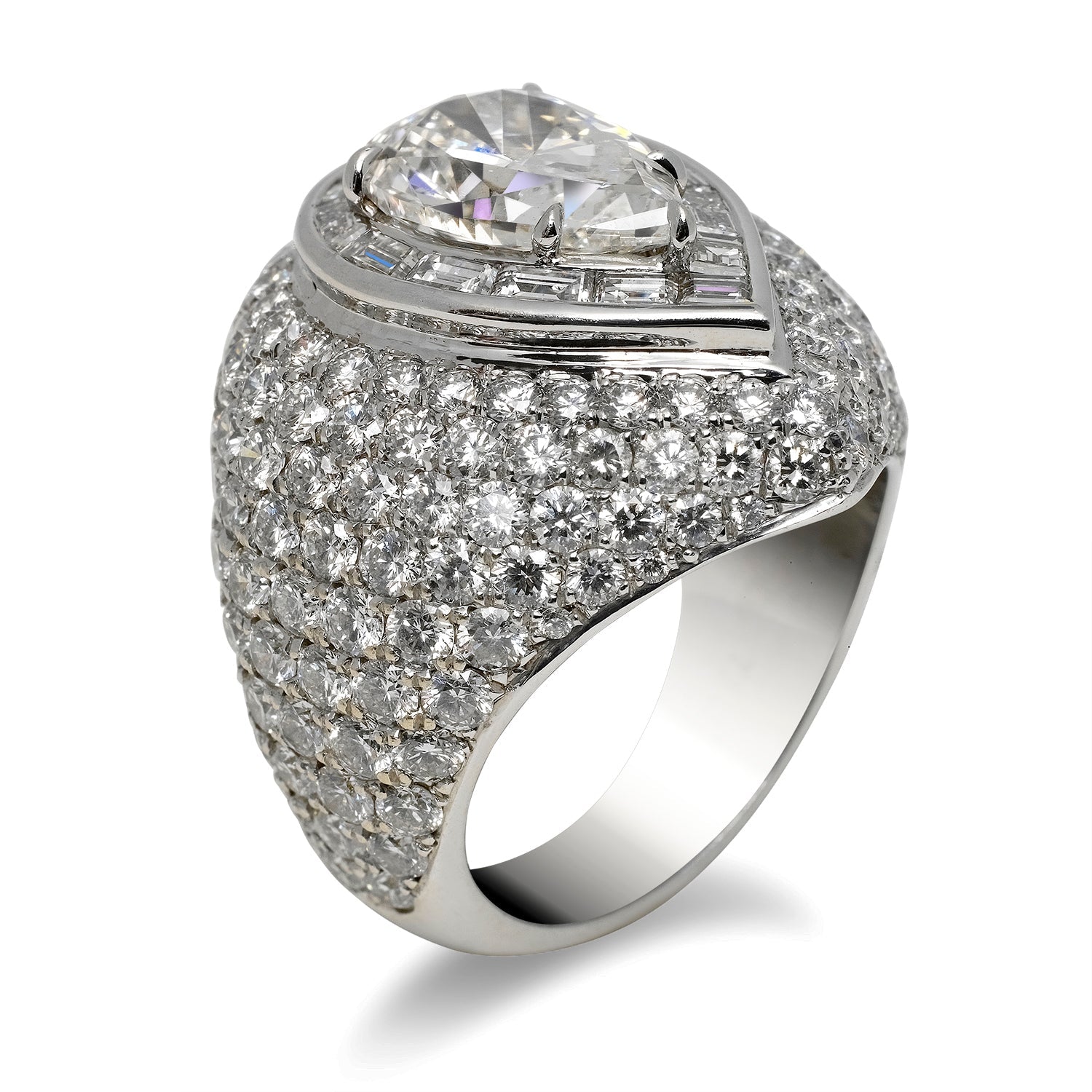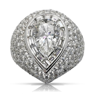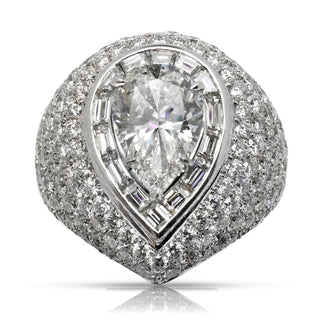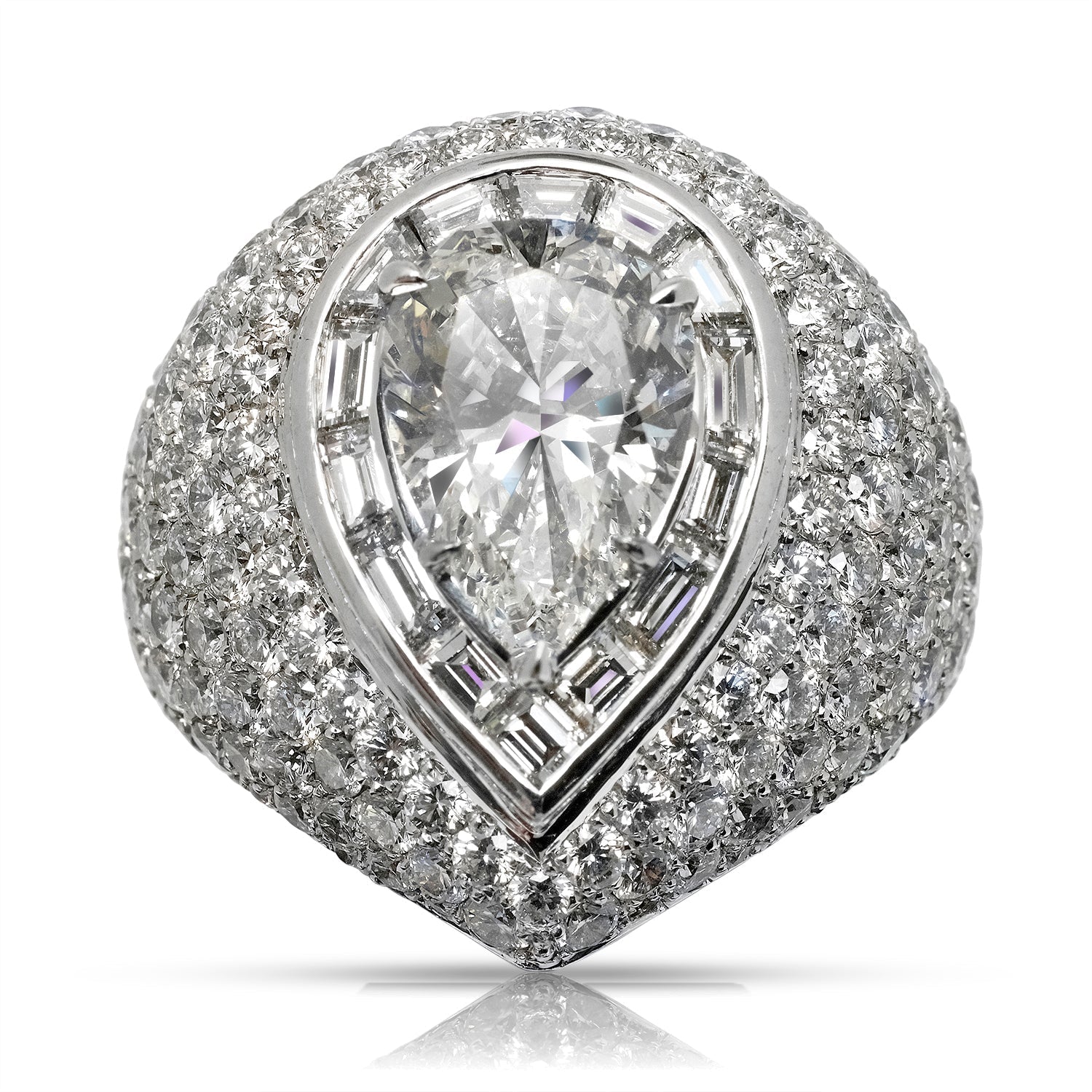 Style: Baguette Halo around Pear Shape Diamond center, Micro Pave ring