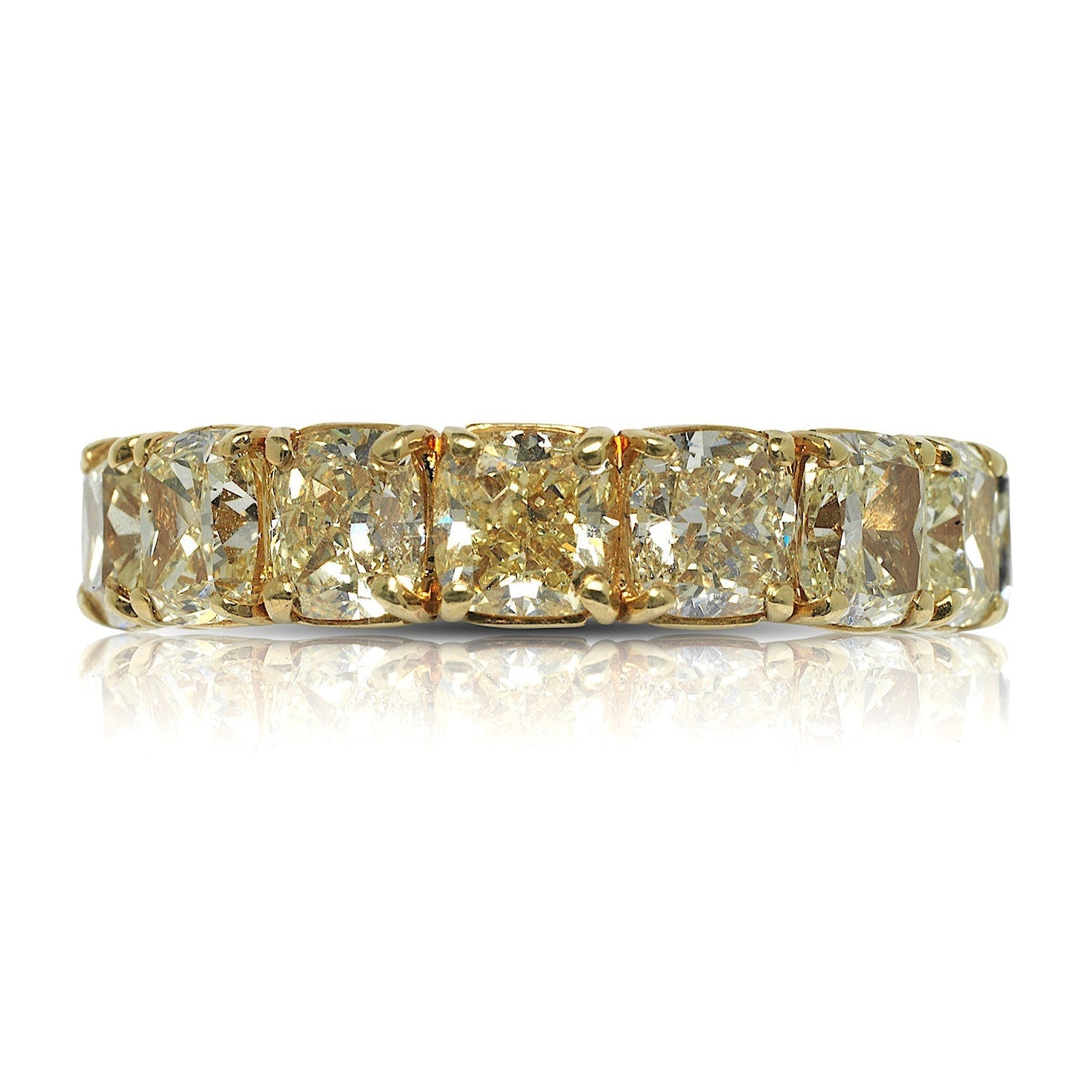 YANG 9 Carat Cushion Cut Yellow Diamond Eternity Band in 18K Gold Shared Prong 60 pointer By Mike Nekta