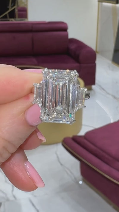 Liliya 22 Carats G VS2 Emerald Cut Lab-Grown Diamond Engagement Ring in 18k White Gold