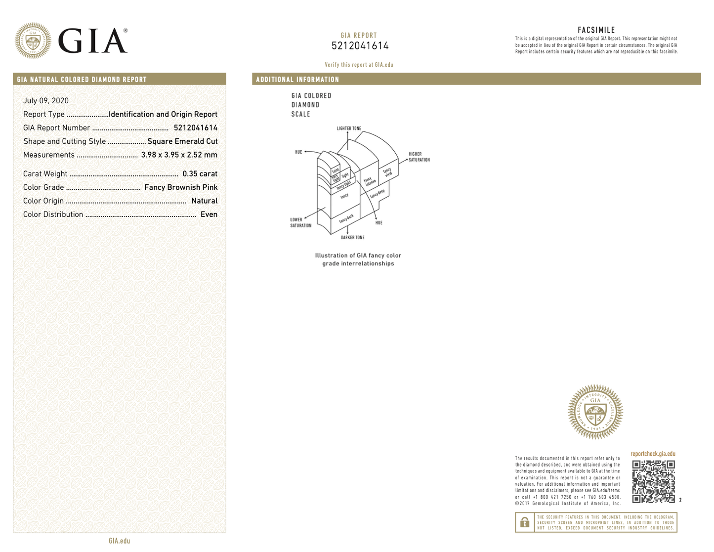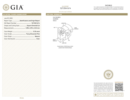 0.35 CARAT EMERALD CUT NATURAL FANCY BROWNISH PINK EVEN LOOSE PINK DIAMOND GIA CERTIFIED 0.35 CT FBP BY MIKE NEKTA NYC