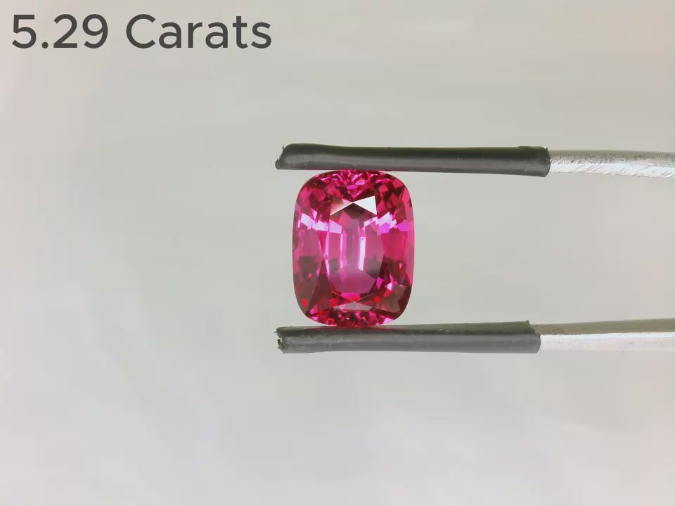 5.29 Carat Cushion Brilliant Cut Heated Natural Pinkish-Red Ruby