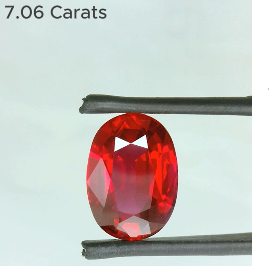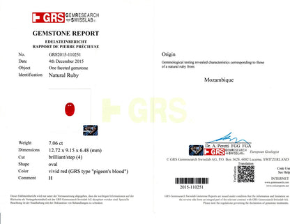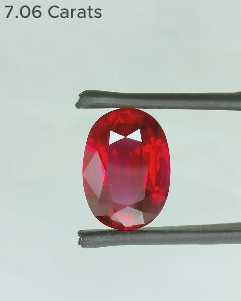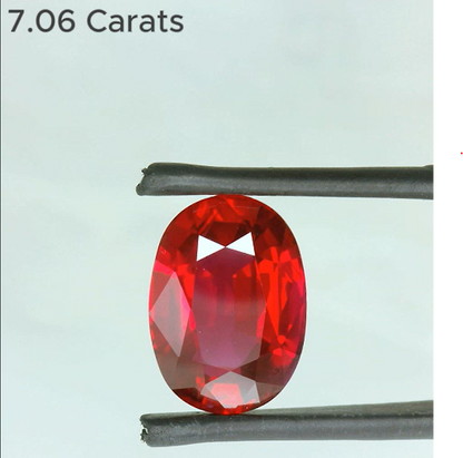 7.06 Carat Oval Brilliant Cut Heated Pigeon's Blood Vivid Red Natural Ruby