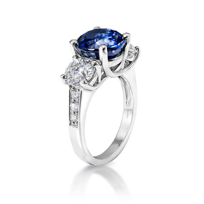 Adaline 8 Carat Round Brilliant Blue Sapphire Ring in 18 Karat White Gold