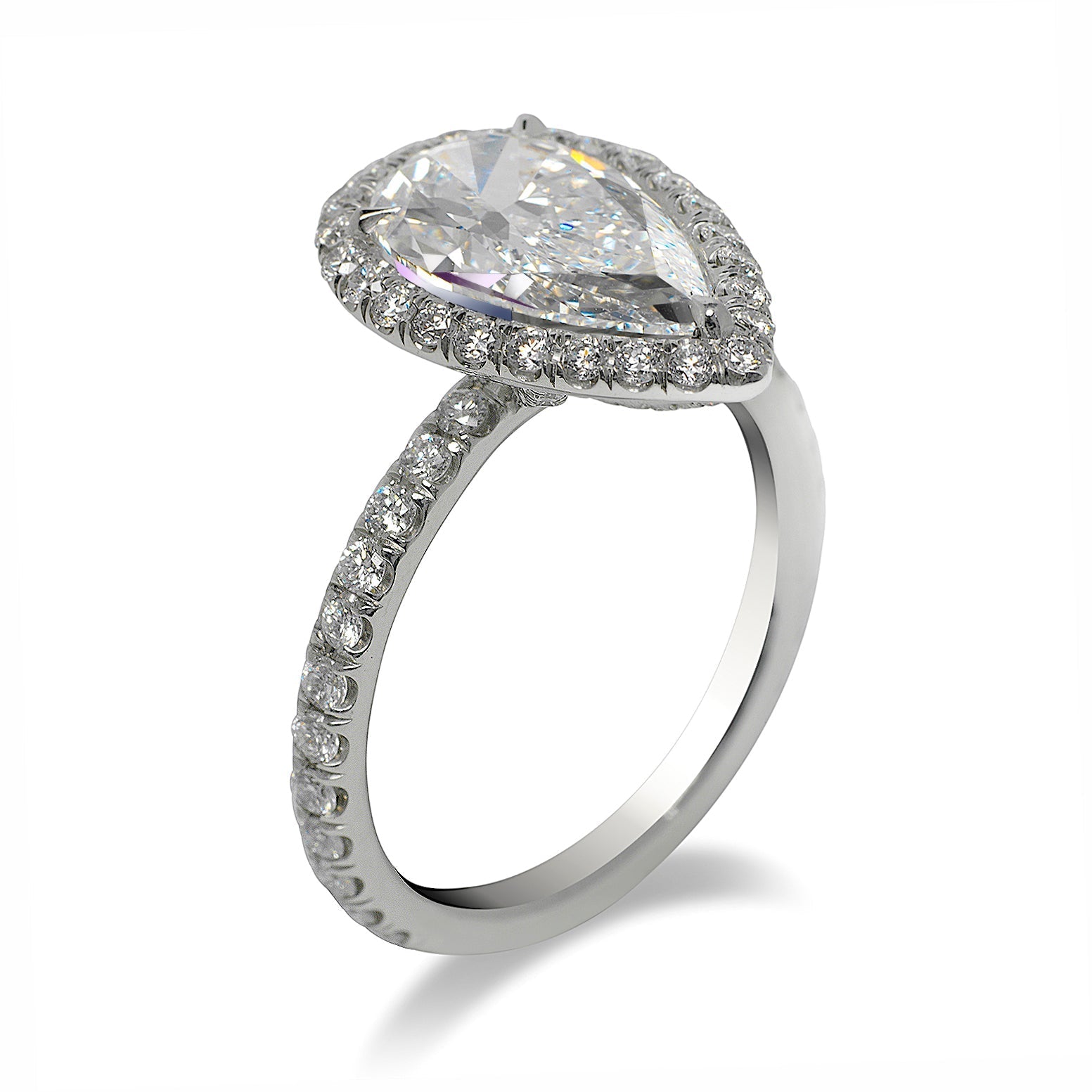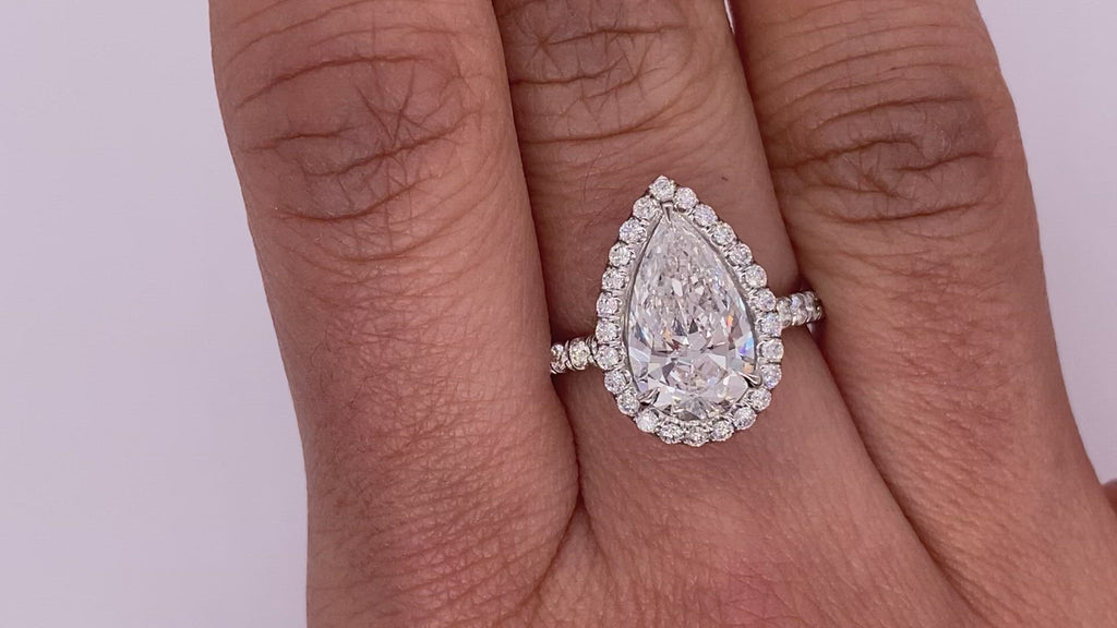 AIN PEAR SHAPE HALO DIAMOND ENGAGEMENT RING PLATINUM BY MIKE NEKTA