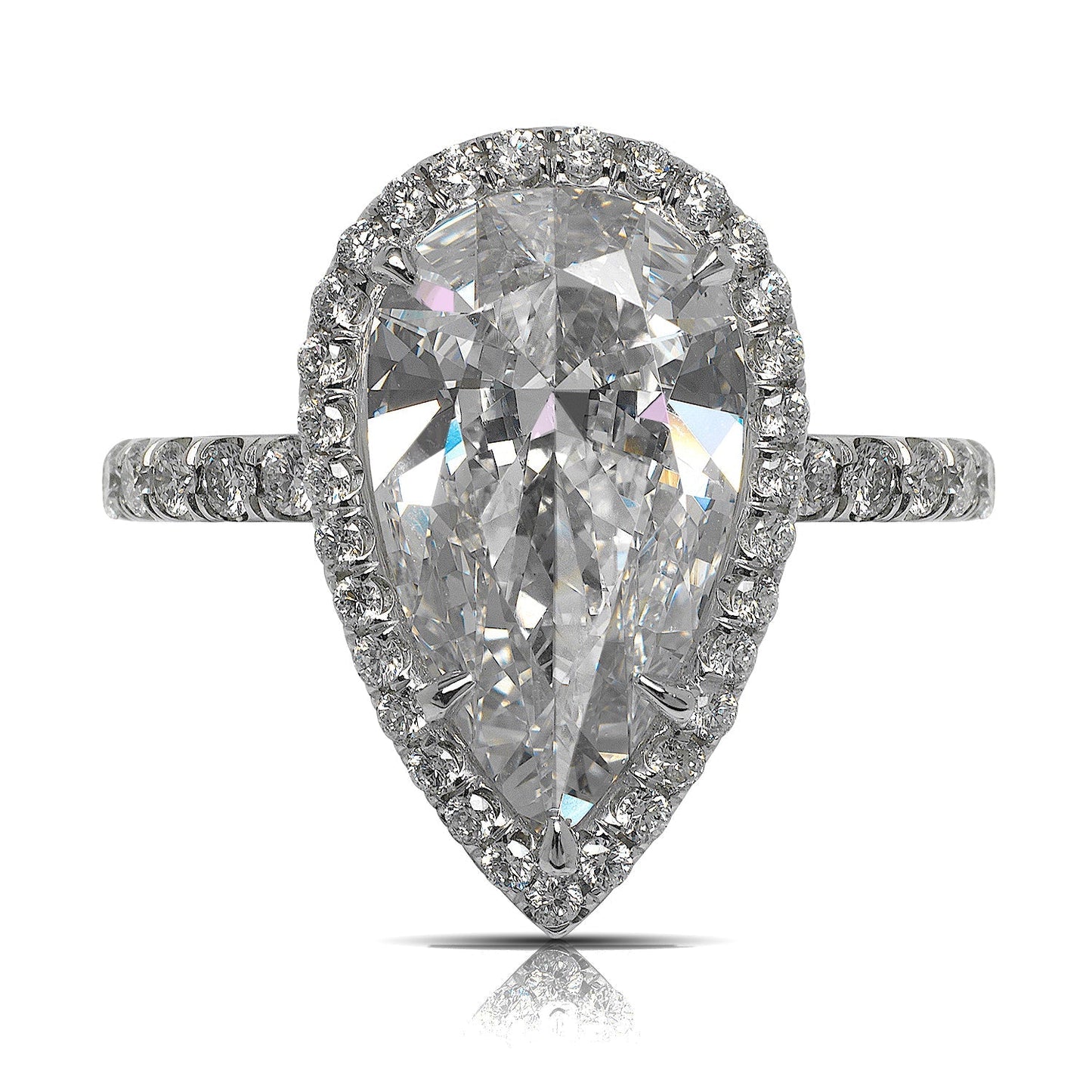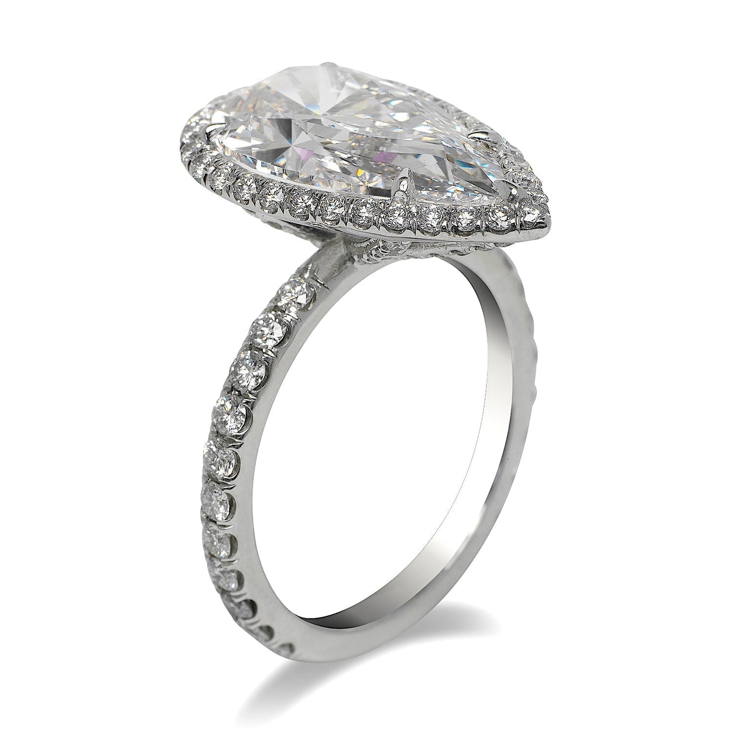 AMAKA 5 Carat Faint Pink Halo Pear Shaped Diamond Engagement Ring in Platinum GIA CERTIFIED 4 ct VS1
