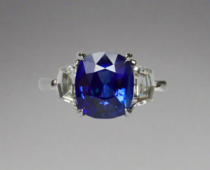 Angelina 3.65 Carats Sapphire Cushion Cut Gemstone Ring in Platinum By Mike Nekta NYC