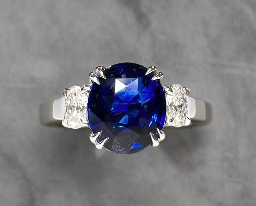 Arabella 4.51 Carats Sapphire Oval Cut Gemstone Ring in Platinum By Mike Nekta NYC