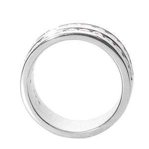 The Ares Diamond Wedding Band for Men features a Double Channel of 30 Round Cut brilliant 5 pointer diamonds weighing a total of approximately 1.50 carats between beveled edges, set in the metal of your choice. Rounded inner edges 10.5mm band, comfortable for everyday wear.