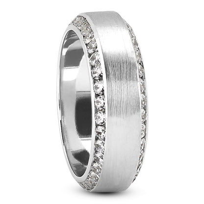 The ATLAS Diamond Eternity Wedding Band for Men features 70 round brilliants 3 pointer natural diamonds weighing a total of approximately 2.10 carats set in the metal of your choice. 8mm band, Comfort Fit.