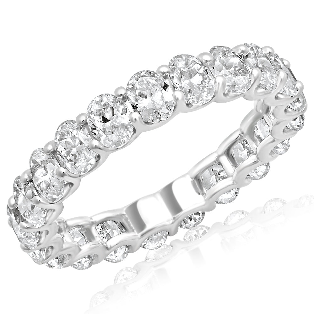 The AZALEA Wedding Anniversary Eternity Band features 17 Oval Cut 25 pointer diamonds weighing a total of approximately 4.40 carats, Shared Prong set in Platinum.