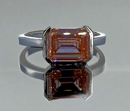 Baalah 3 Carat Emerald Cut Fancy Intense Pink Lab Grown Diamond Engagement Ring in 14k White Gold