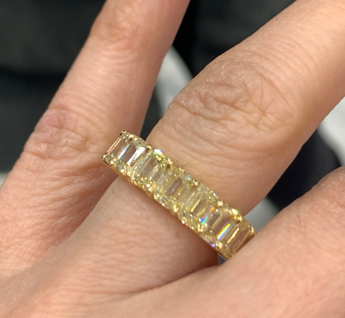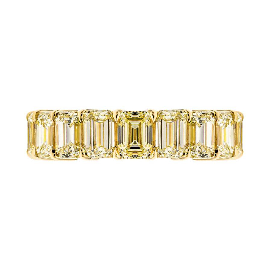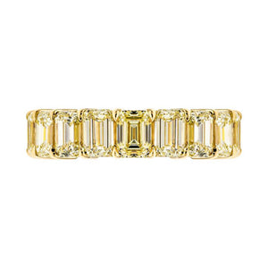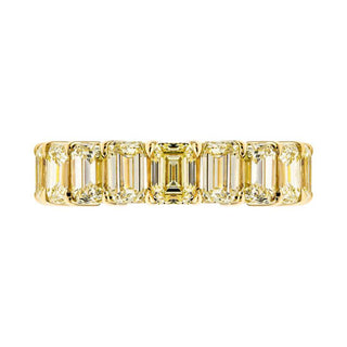 CHLOE 10 Carat Light Yellow Diamond Emerald Cut Eternity Band in 18K Yellow Gold 50 pointer Certified By Mike Nekta SIZE 6.5