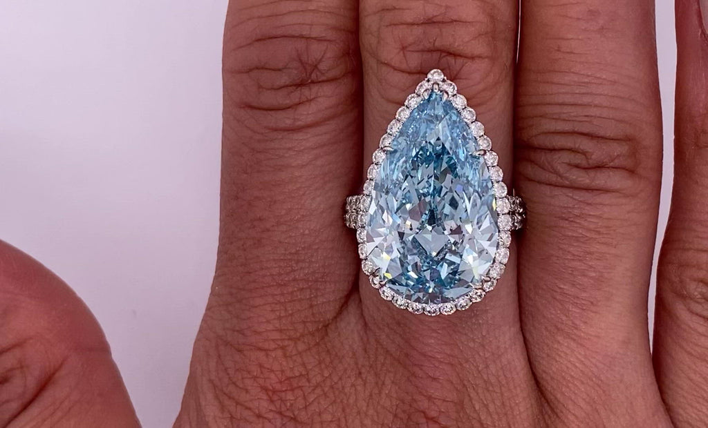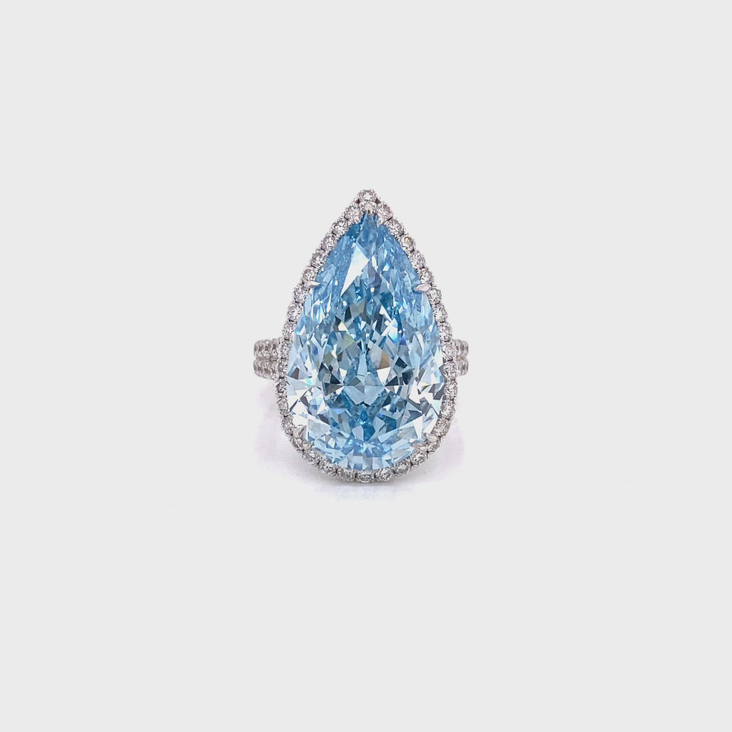 CIELO 15 CARAT PEAR SHAPE FANCY BLUE DIAMOND ENGAGEMENT RING 18K WHITE GOLD GIA CERTIFIED 13 CT BY MIKE NEKTA