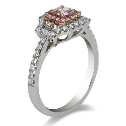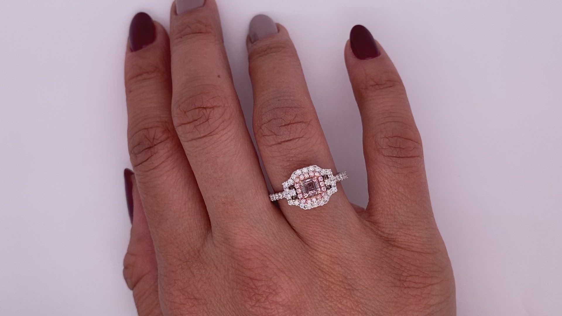 COPPELIA HALO ASSCHER CUT FANCY PINK DIAMOND ENGAGEMENT RING 18K ROSE WHITE GOLD GIA CERTIFIED 0.35 CT BY MIKE NEKTA
