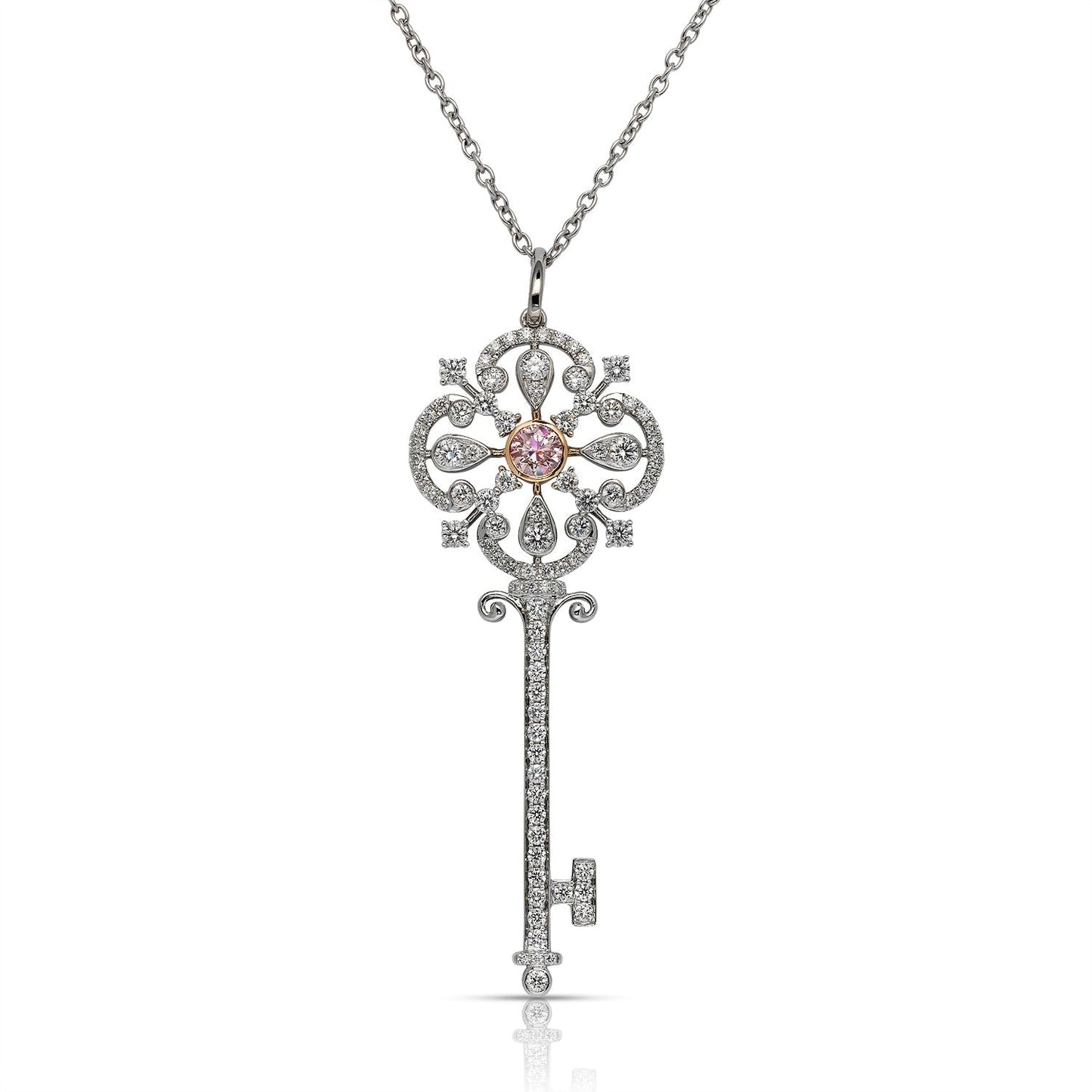 Style: Pink Diamond key pendant with pavé round brilliant diamonds