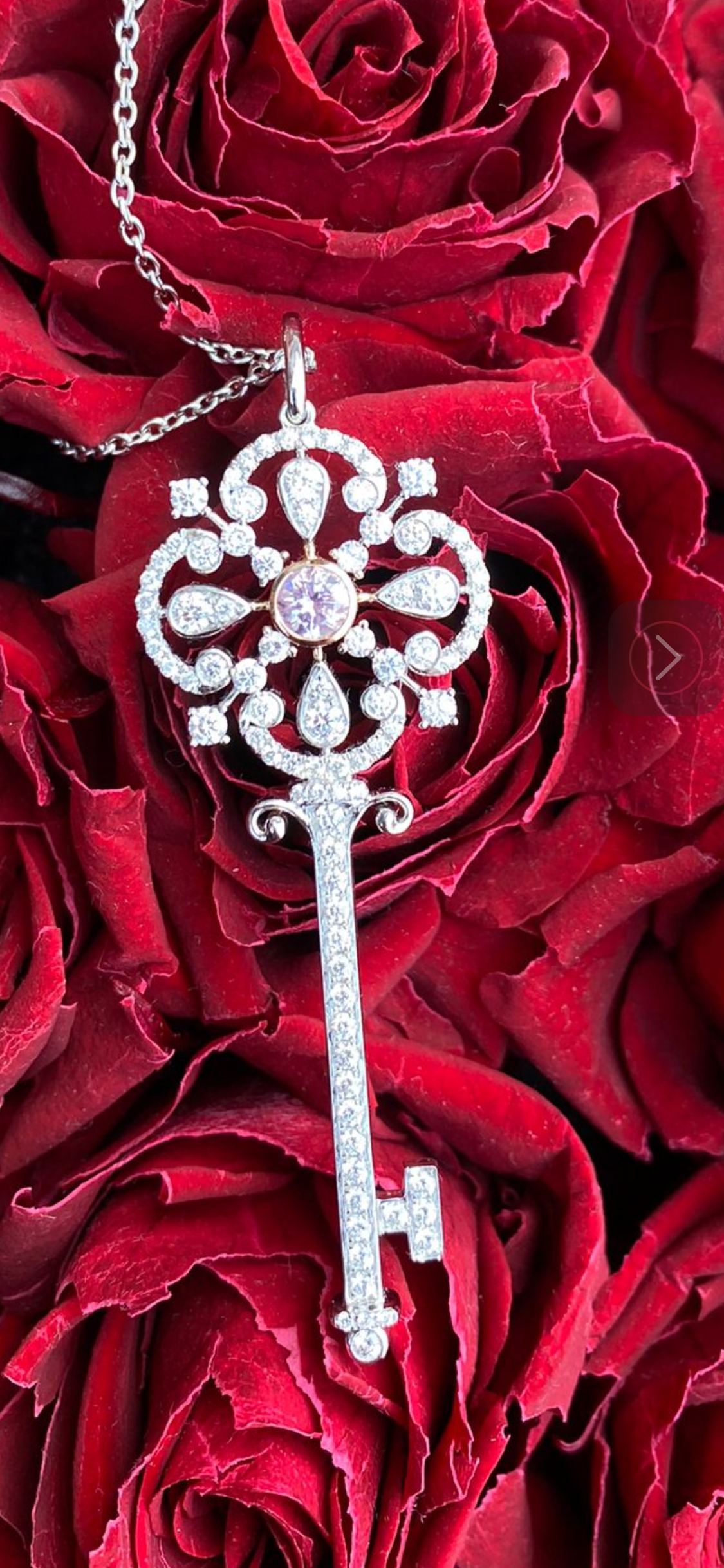 CROWN KEY PENDANT PINK DIAMOND 18K WHITE & ROSE GOLD BY MIKE NEKTA