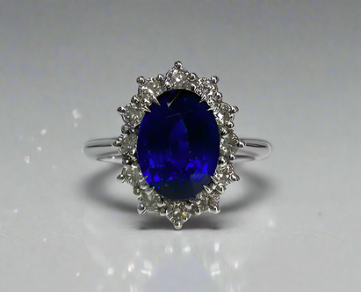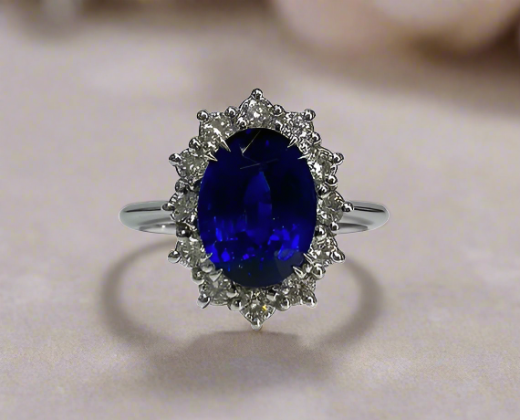Dakota 3.02 Carats Sapphire Oval Cut Gemstone Ring in 18k White Gold By Mike Nekta NYC