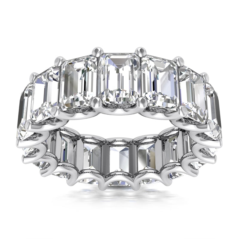 The ECLAT wedding eternity band features 19 Emerald-Cut 35 pointer natural diamonds weighing a total of approximately 6.65 carats, U-Shaped Shared Prong set in the metal of your choice.