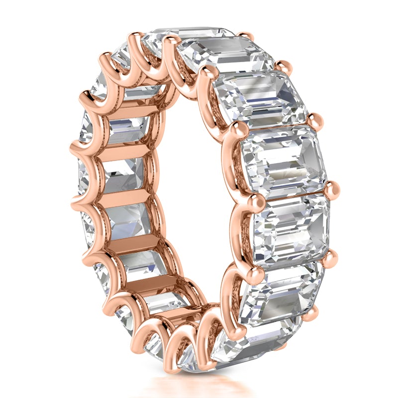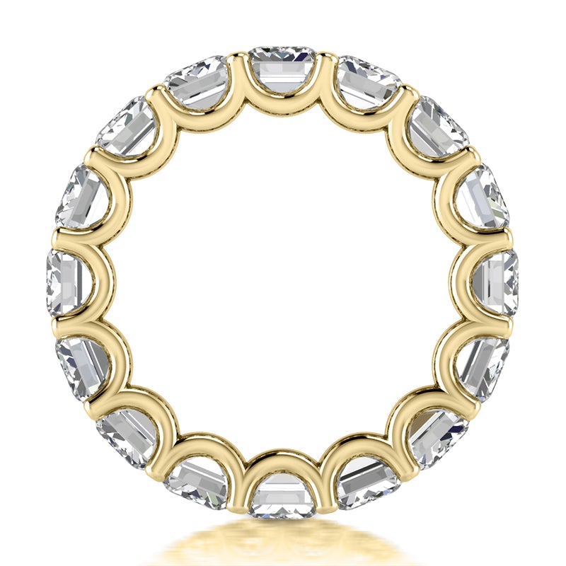The ECLAT wedding eternity band features 18 Emerald-Cut  35 pointer natural diamonds weighing a total of approximately 6.30 carats, U-Shaped Shared Prong set in the metal of your choice.