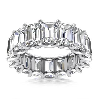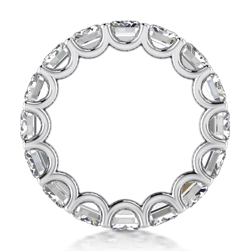 The ECLAT wedding eternity band features 18 Emerald-Cut 35 pointer natural diamonds weighing a total of approximately 6.30 carats, U-Shaped Shared Prong set in the metal of your choice.