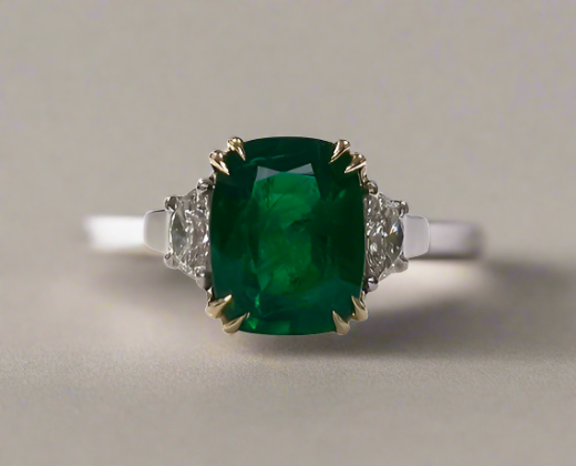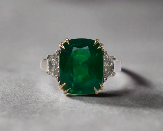 Elianna 3.95 Carats Cushion Cut Emerald Gemstone Ring in 18K White Gold By Mike Nekta NYC