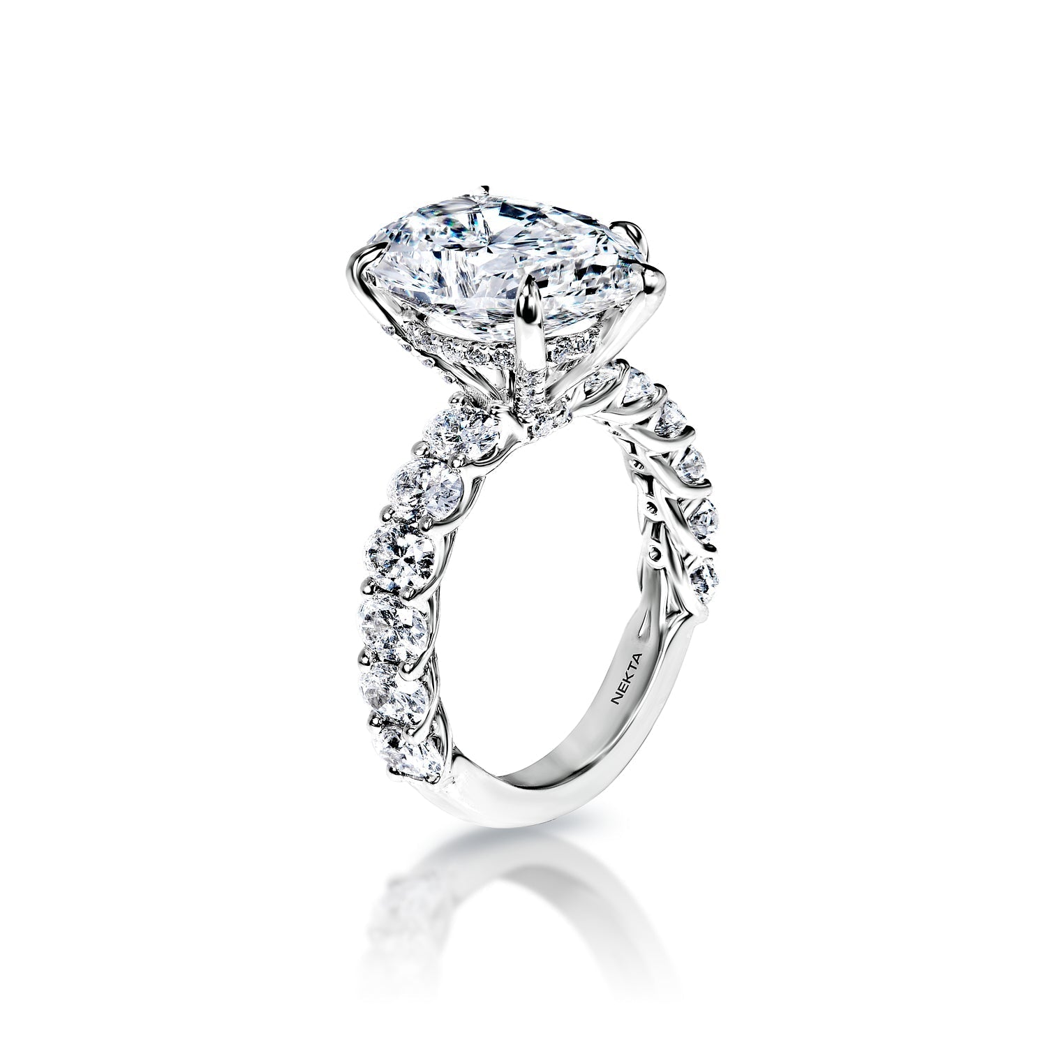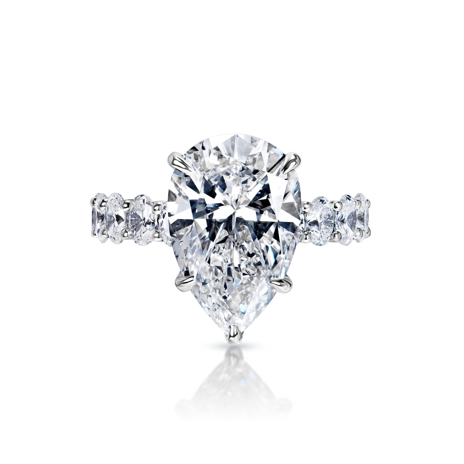 Ellianna 8 Carat H Internally Flawless Pear Shape Diamond Engagement Ring in 18k White Gold By Mike Nekta.