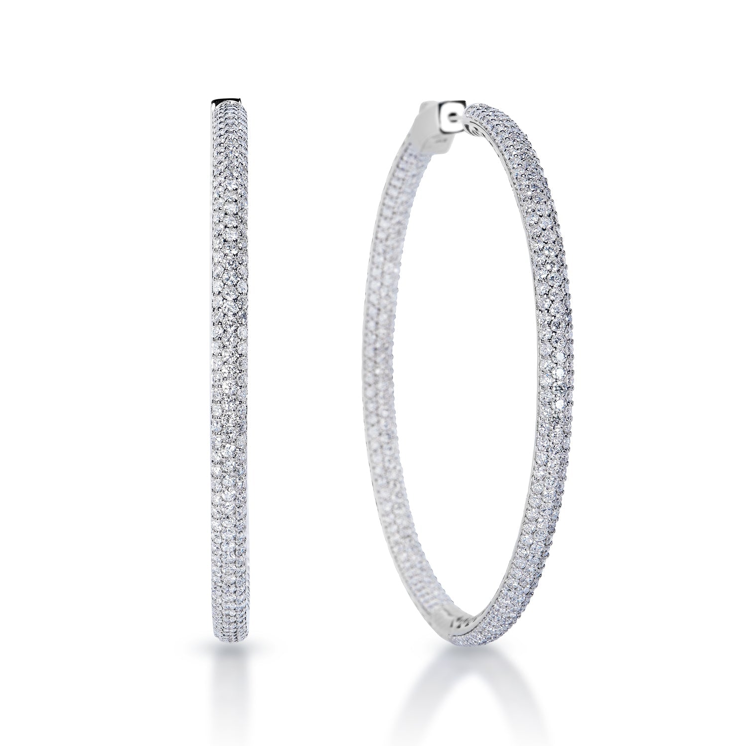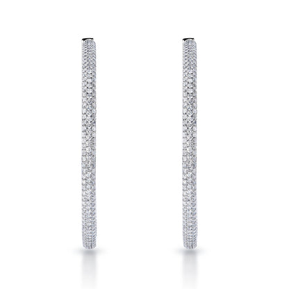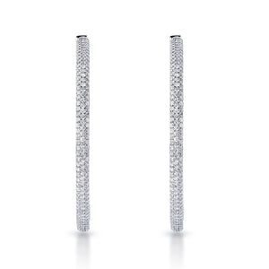 Emily 2 Inch Pave Diamond Hoops 6 Carat Diamond Earrings 14k White Gold