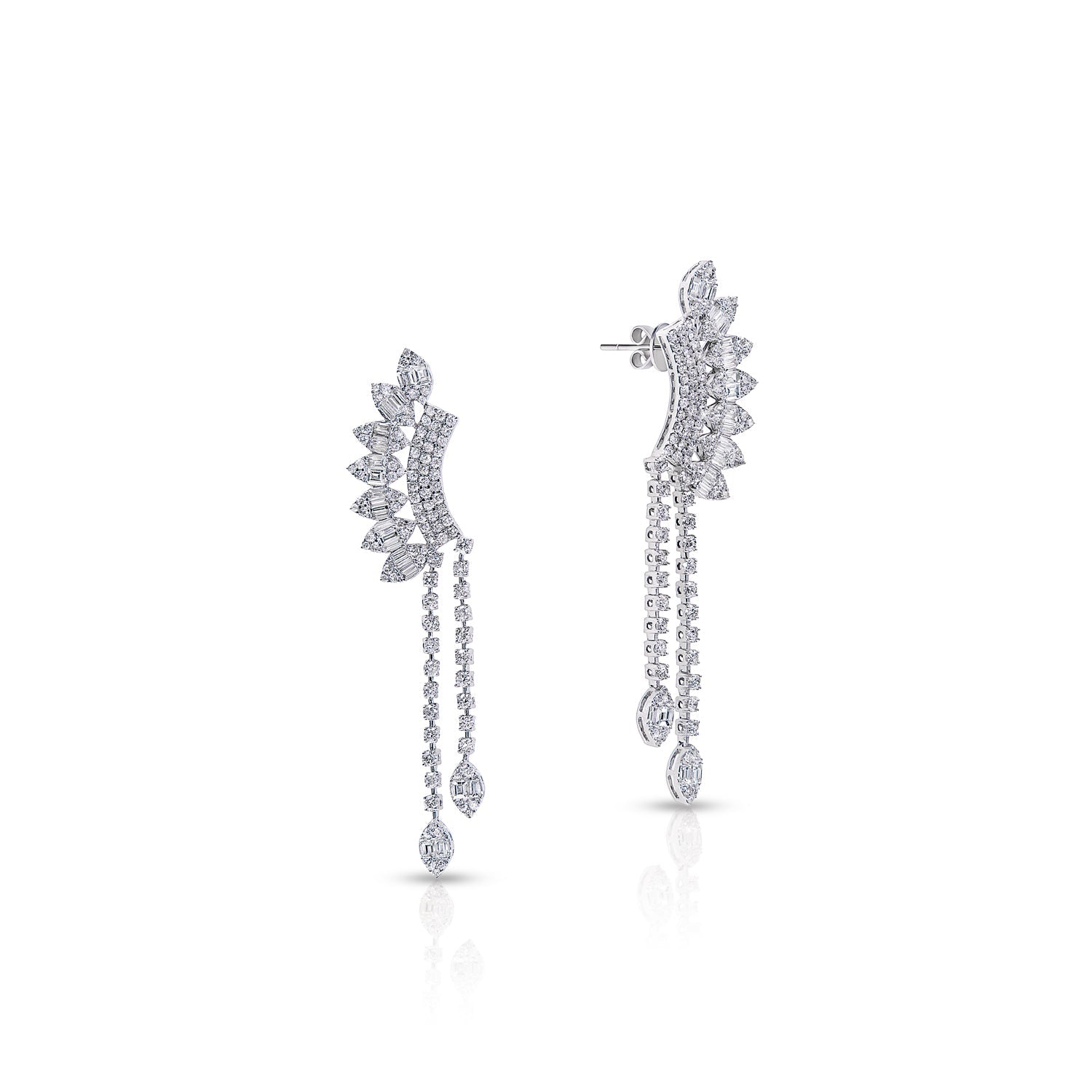 Estella 4 Carat Combine Mix Shape Dangling Diamond Earrings in 14k White Gold