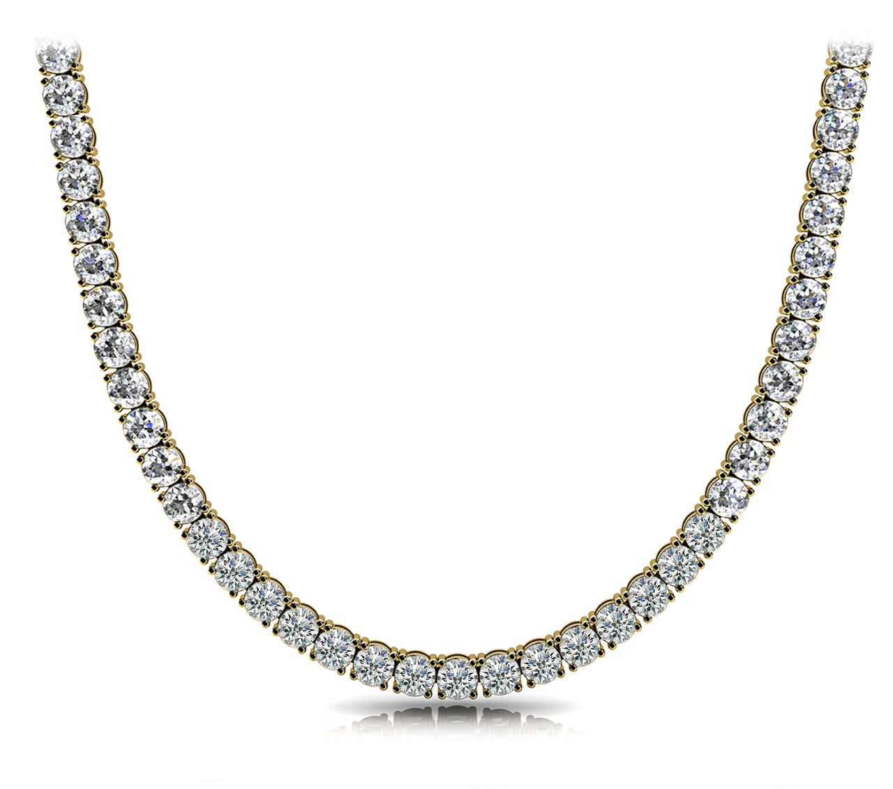 The GALE Riviera Tennis Necklace features 79 round brilliant 50 pointer diamonds weighing a total of approximately 40 carats, set upon 18K Yellow Gold in a 4 prong setting.