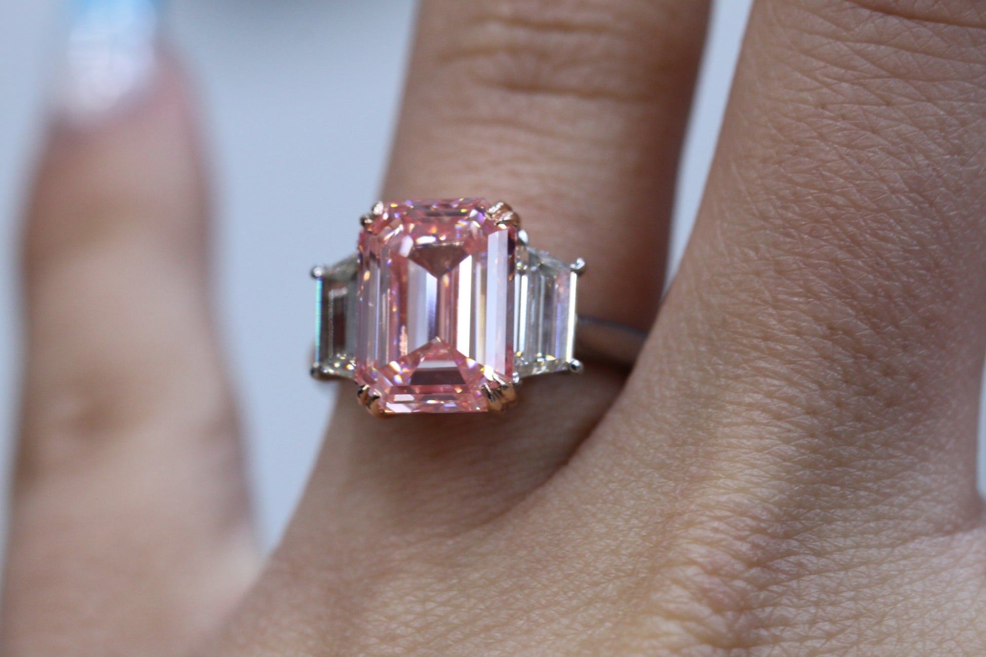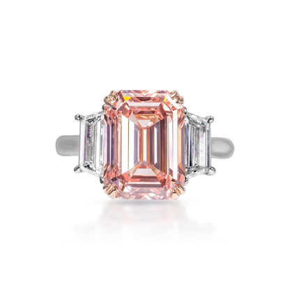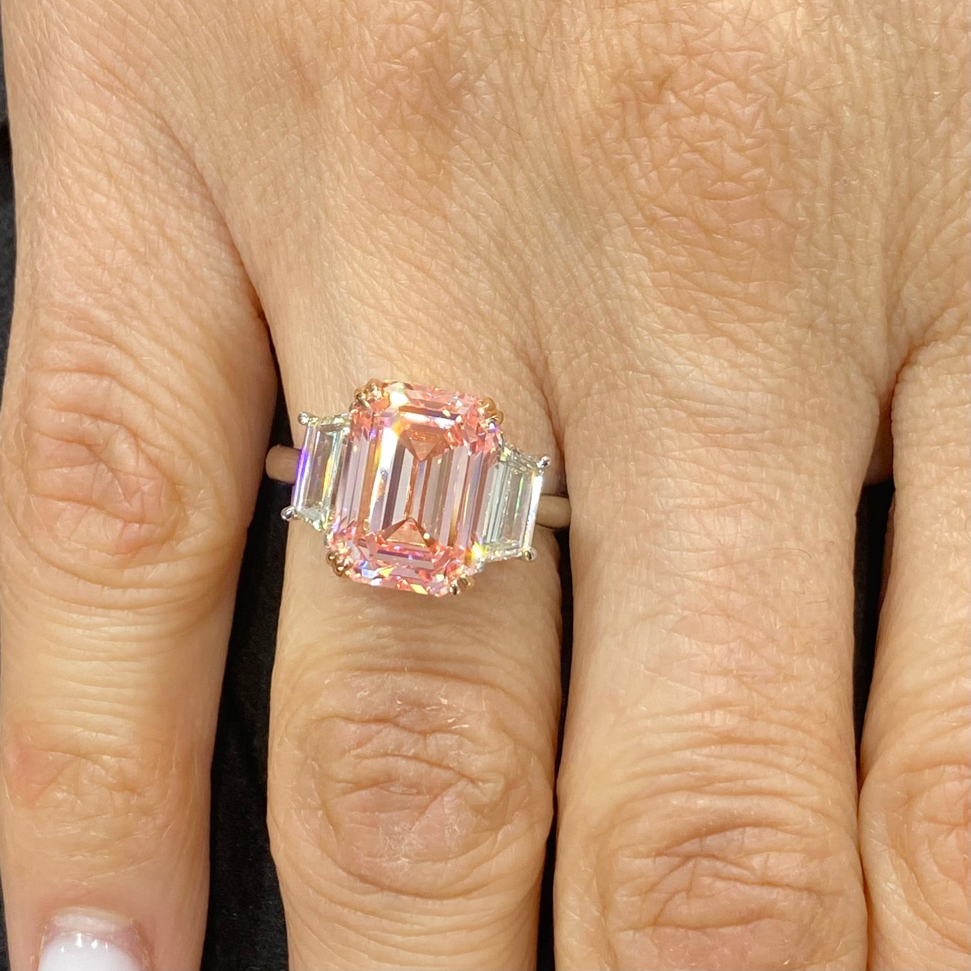 Gloria 7 Carats Pink VVS1 Emerald Cut Diamond Engagement Ring in 18k White Gold. GIA Certified