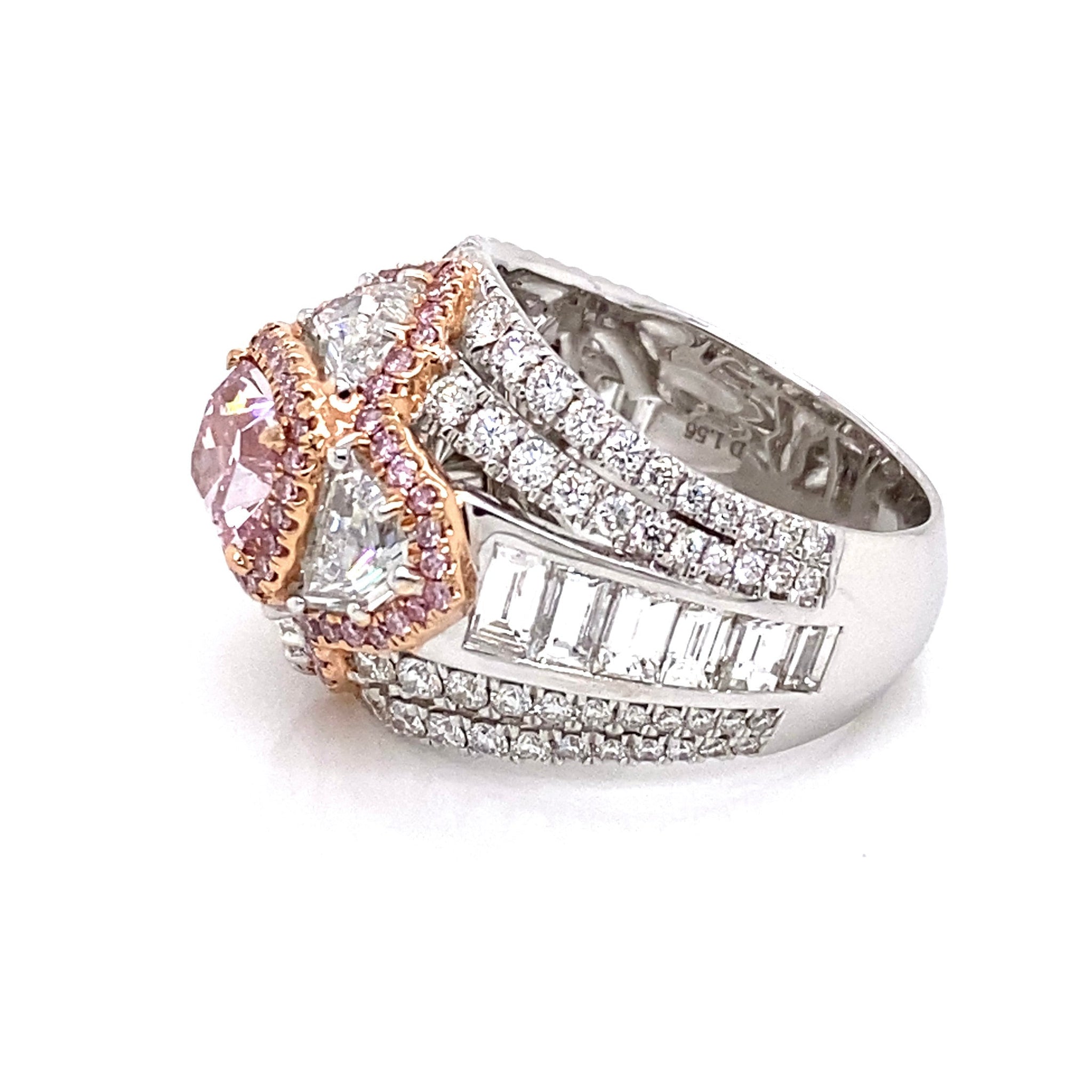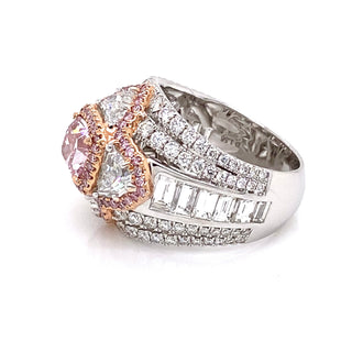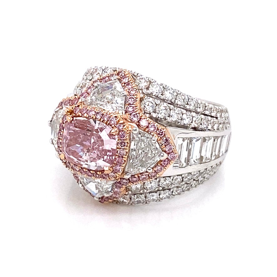 HEIDI 5 CARAT NATURAL PINK CUSHION CUT FANCY INTENSE PURPLISH PINK DIAMOND ANNIVERSARY RING 18K WHITE GOLD GIA CERTIFIED 2CT BY MIKE NEKTA