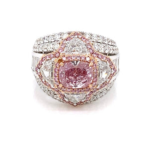 NATURAL FANCY INTENSE PURPLISH PINK CUSHION CUT DIAMOND ENGAGEMENT 18K WHITE GOLD RING BY MIKE NEKTA