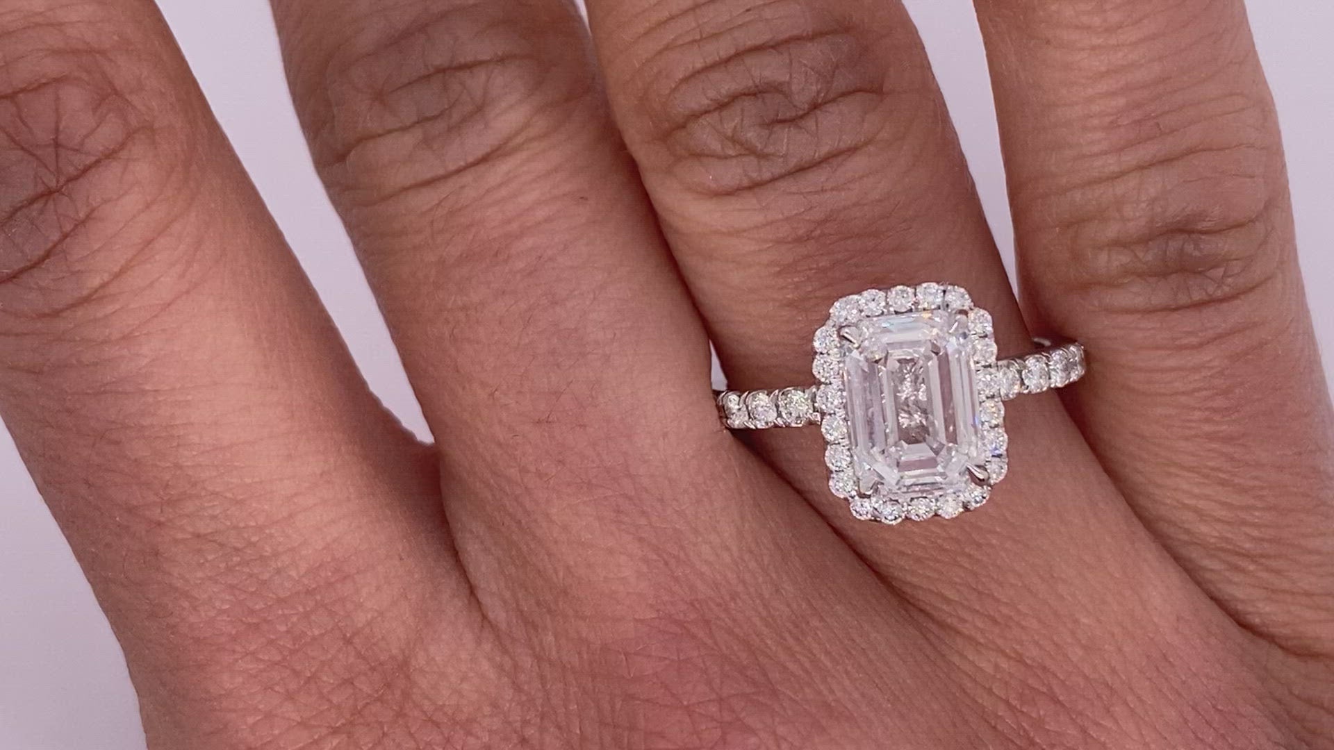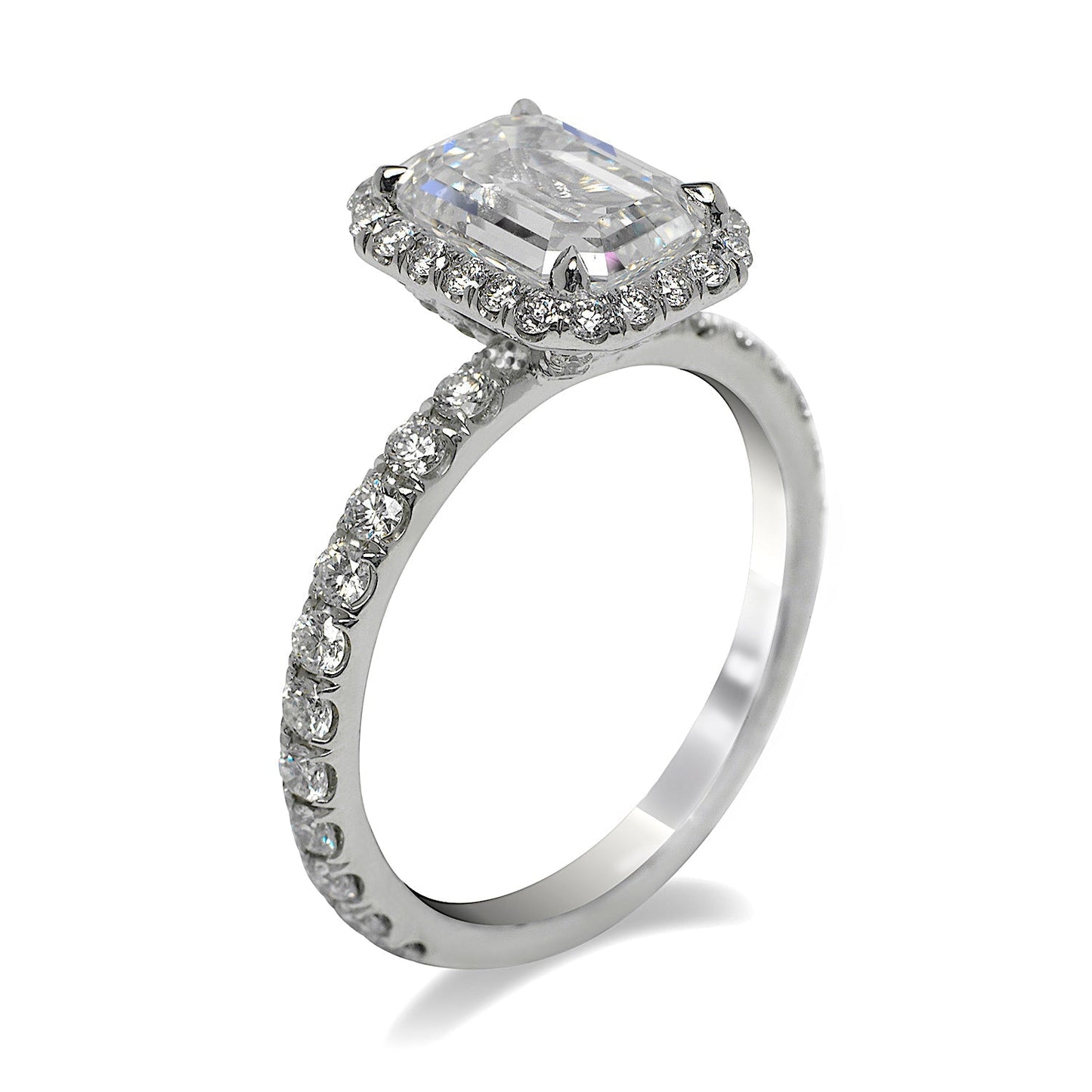 Style: HALO EMERAL CUT,SIDESTONES PAVE BAND.