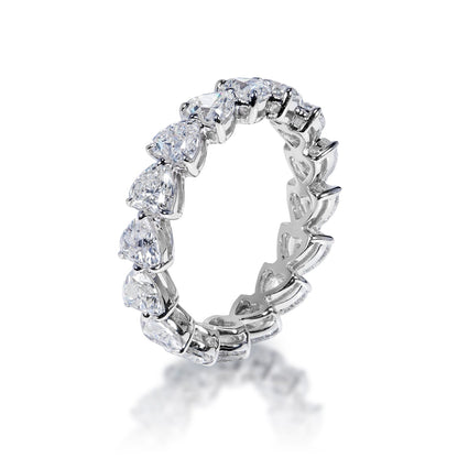Ivory 4 Carat Heart Shape Diamond Eternity Band in 18k White Gold Shared Prong