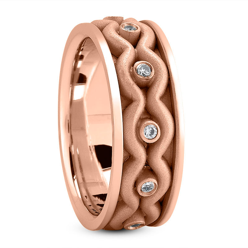 Jaxon Men's Diamond Wedding Ring Round Cut Wavy Rope in 14K White/Yellow/Rose Gold By Mike Nekta NYC, 8MM