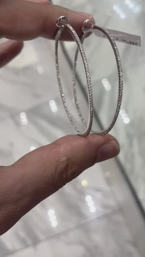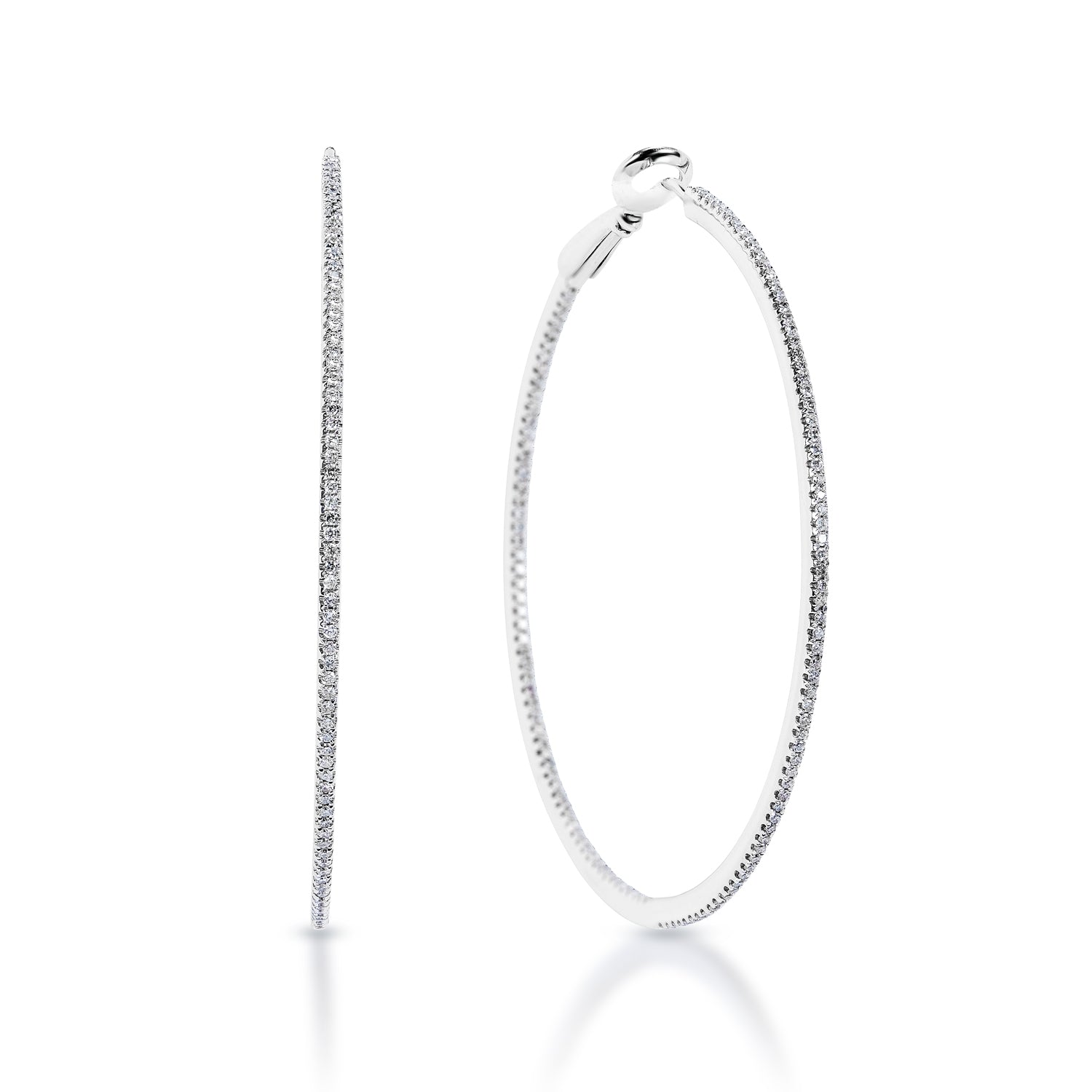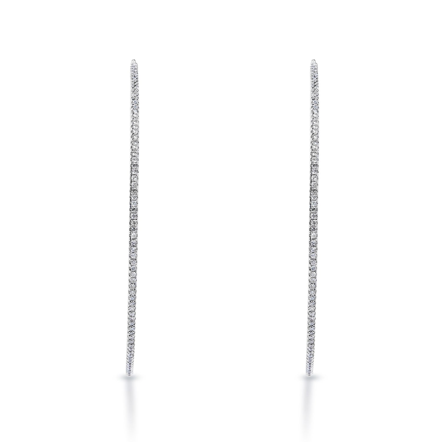 Karla 2 inch Whisper Thin Diamond Hoop Round Brilliant Earrings in 14k White Gold