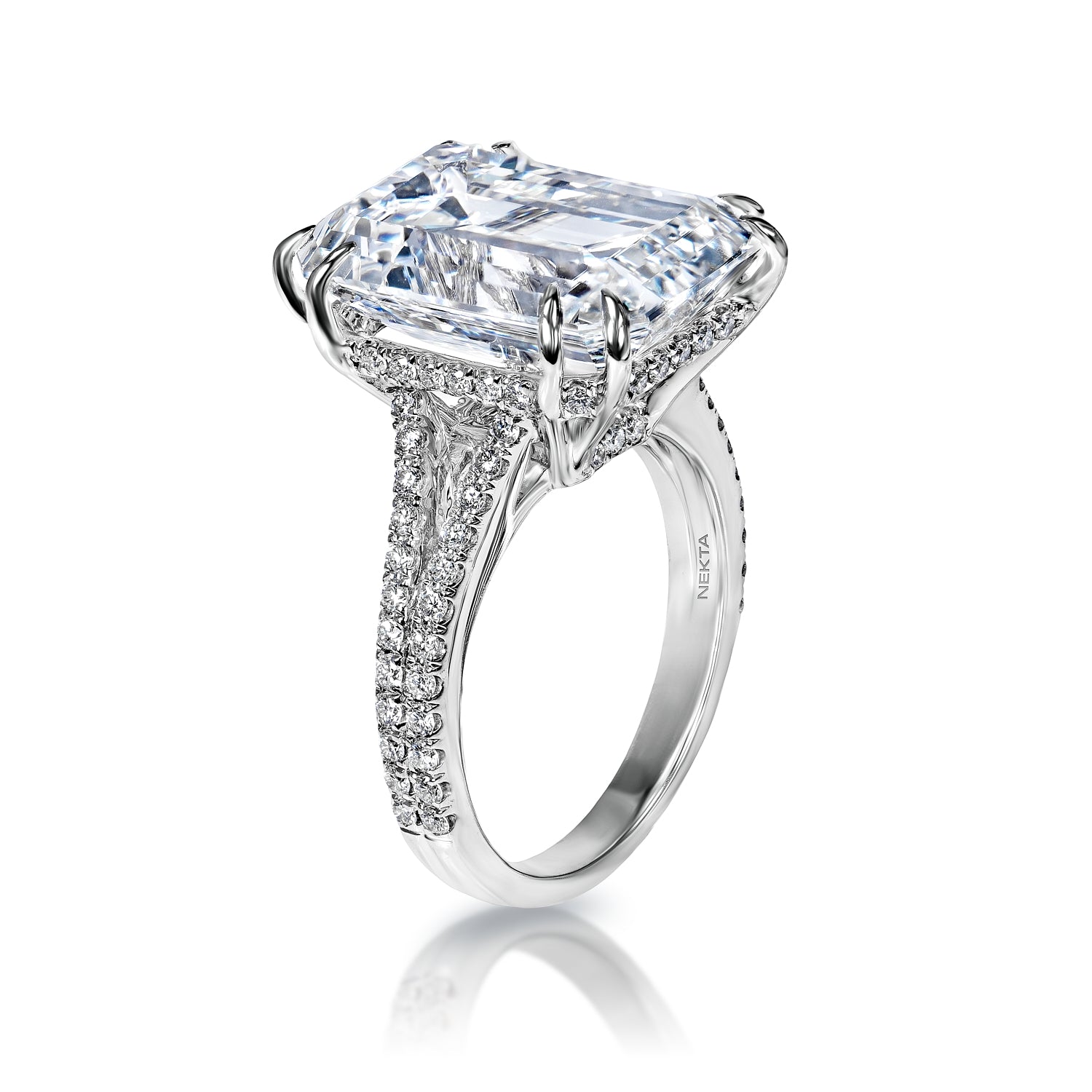 Kayleigh 11 Carats G VVS1 Emerald Cut Diamond Engagement Ring in 18k White Gold. GIA Certified By Mike Nekta
