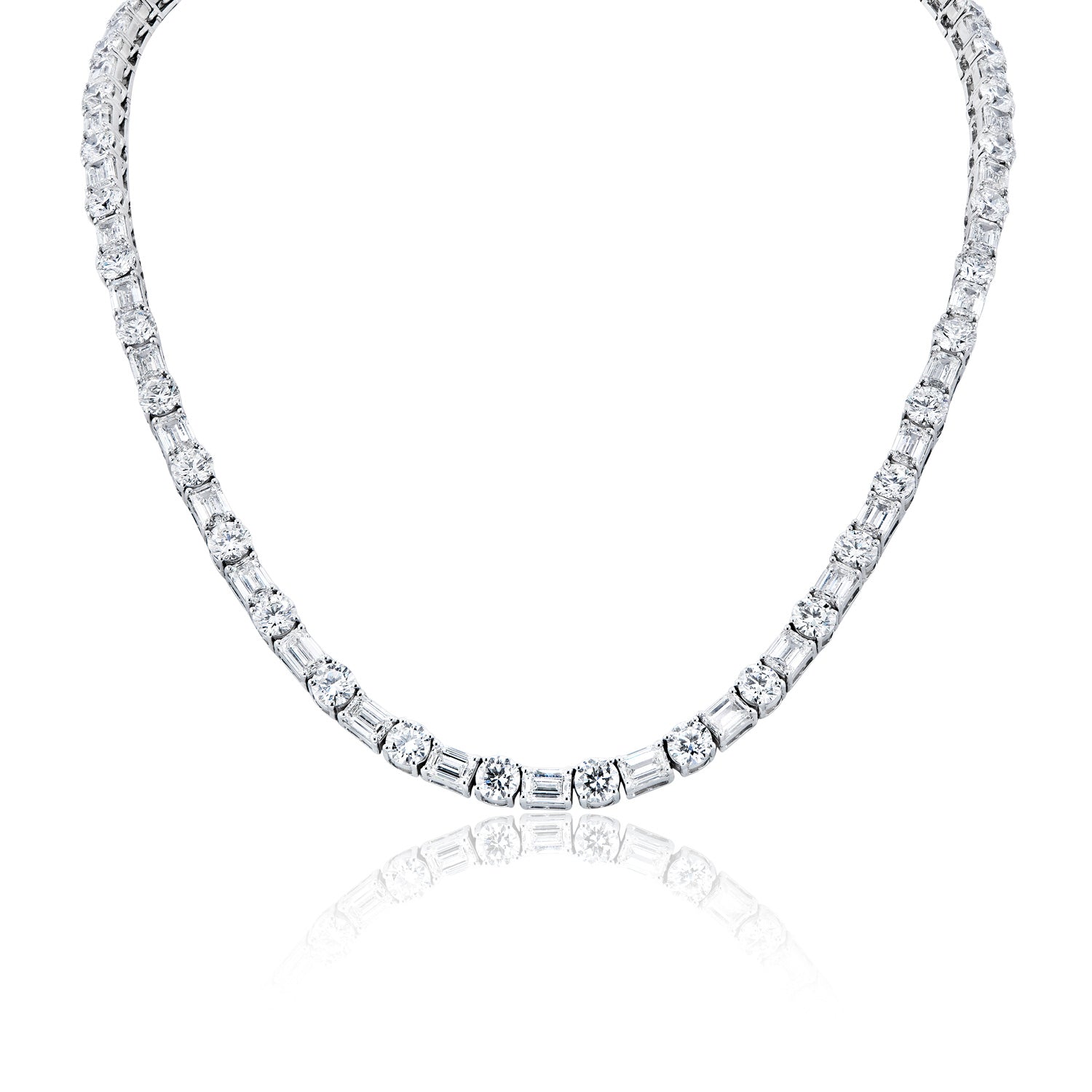 Kimora 85 Carat Round and Emerald Cut Lab Grown Diamond Tennis Necklace in 14k White Gold