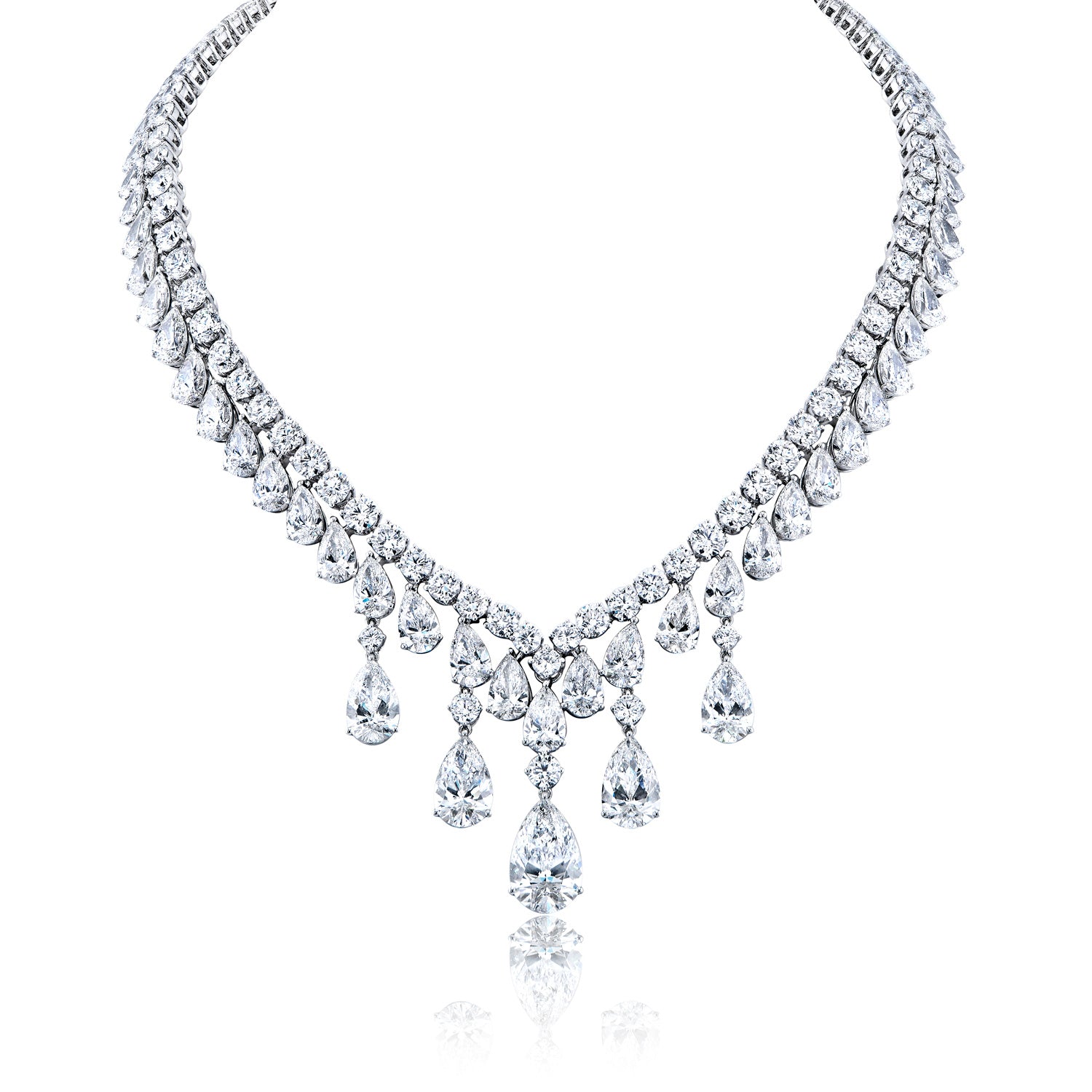 Leeah 105 Carats Combine Mix Shape Lab-Grown Diamond Bib Necklace in 18k White Gold