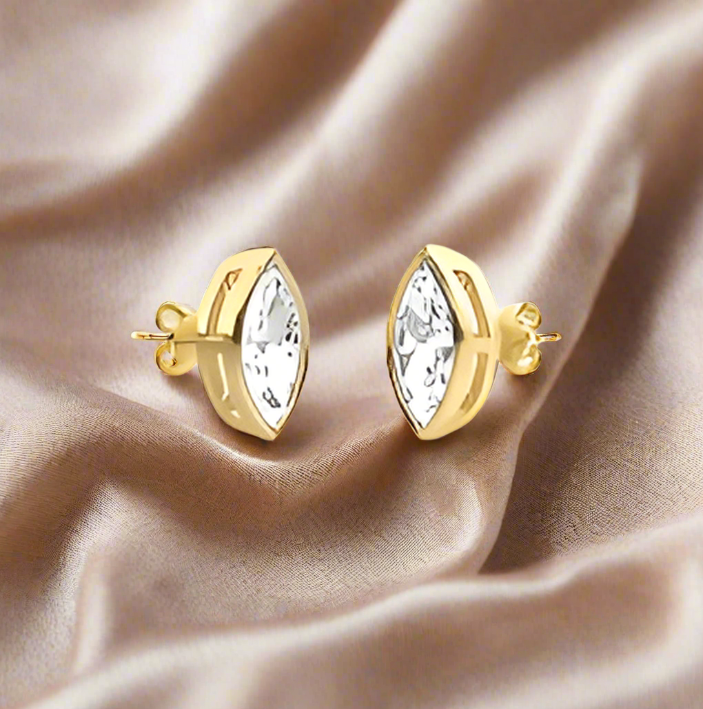 Lehabim 1 Carat Marquise Cut Lab Grown Diamond Bezel Stud Earrings in 14K Yellow/White Gold