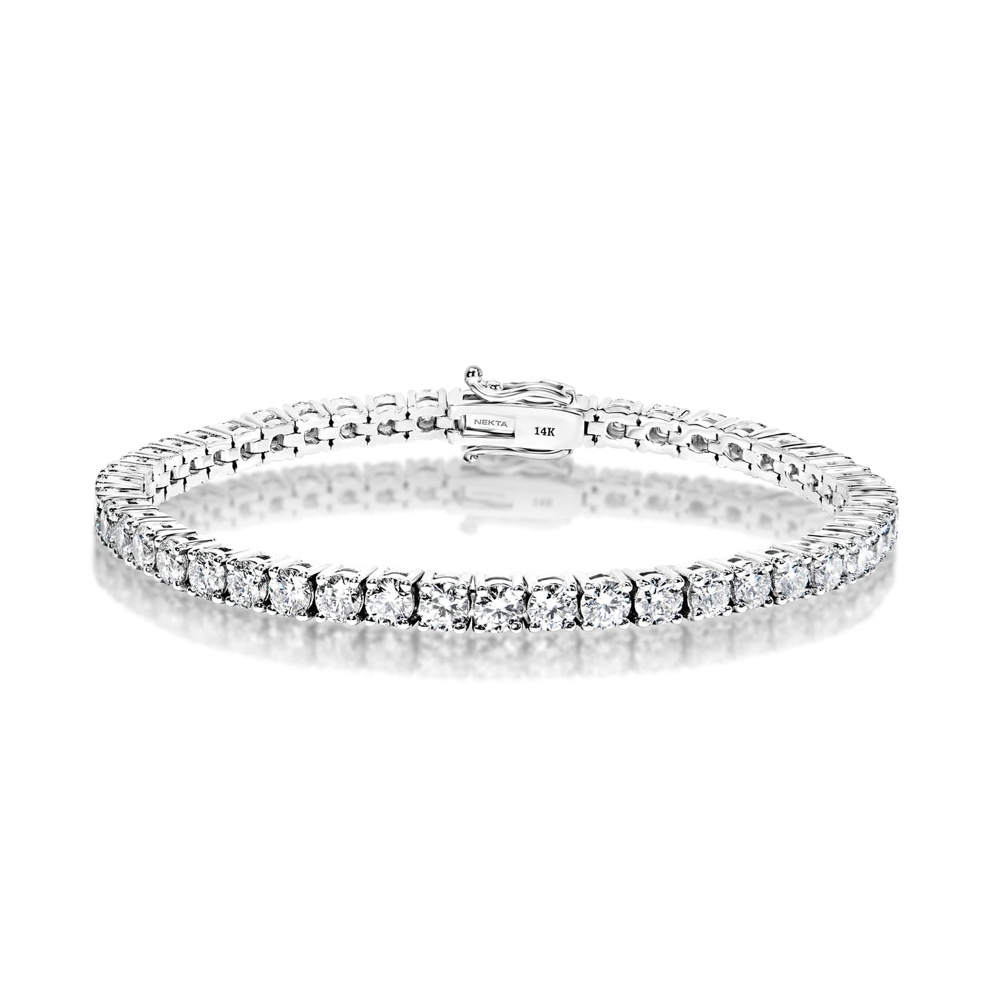 The LENNICE 12.54 Carat Lab-Grown Single Row Diamond Tennis Bracelet features Round Brilliant CUT DIAMONDS brilliants weighing a total of approximately 12.54 carats, set in 14K White Gold.