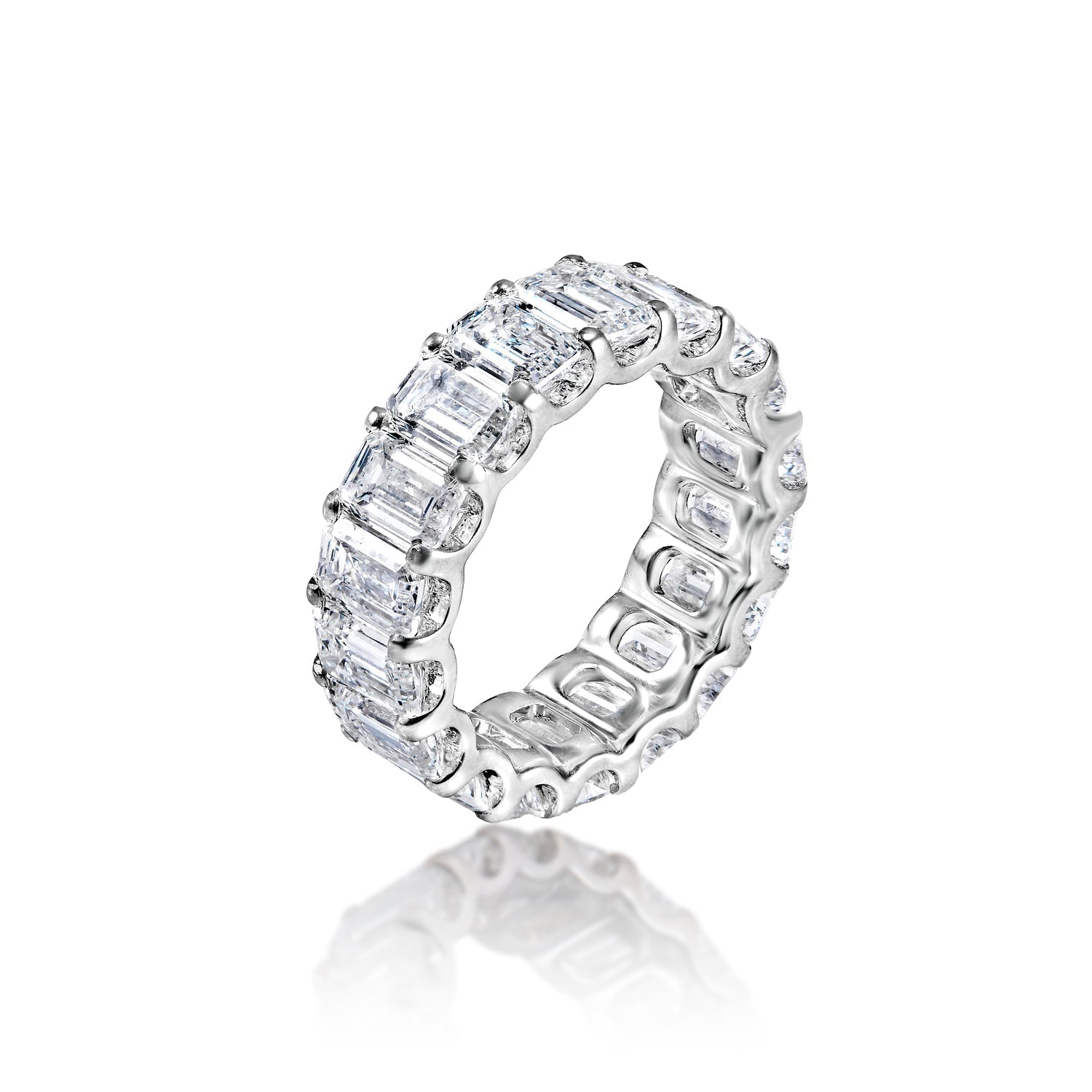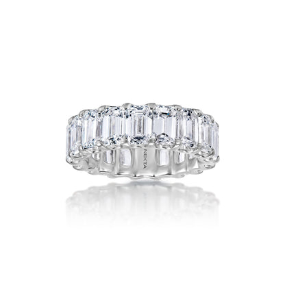 Lil 9 Carat Emerald Cut Lab-Grown Diamond Eternity Band in 14k White Gold U-Shape Shared Prong