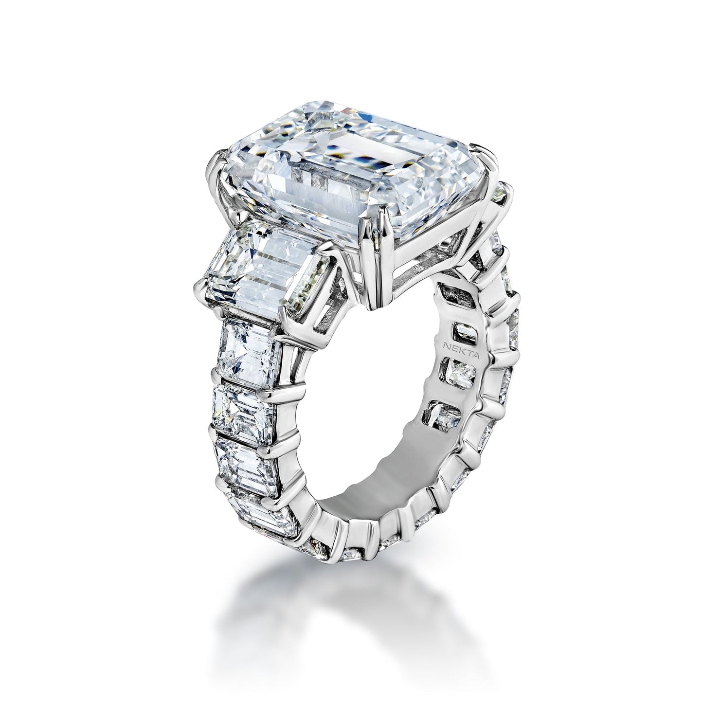 Lilith 16 Carat E VS1 Emerald Cut Lab Grown Diamond Engagement Ring in Platinum. GIA Certified.