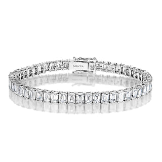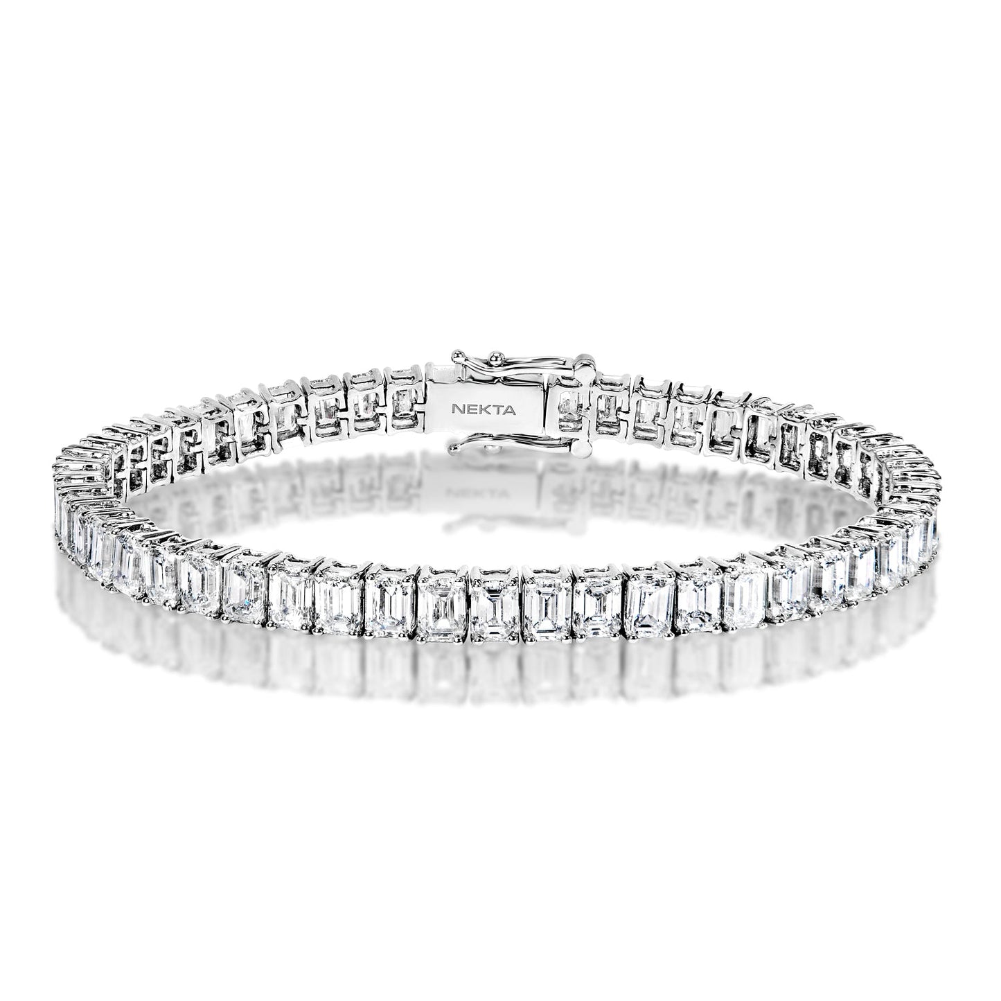 The LING 15.86 Carat Lab-Grown Diamond Tennis Bracelet features EMERALD CUT DIAMONDS brilliants weighing a total of approximately 15.86 carats, set in 14K White Gold.