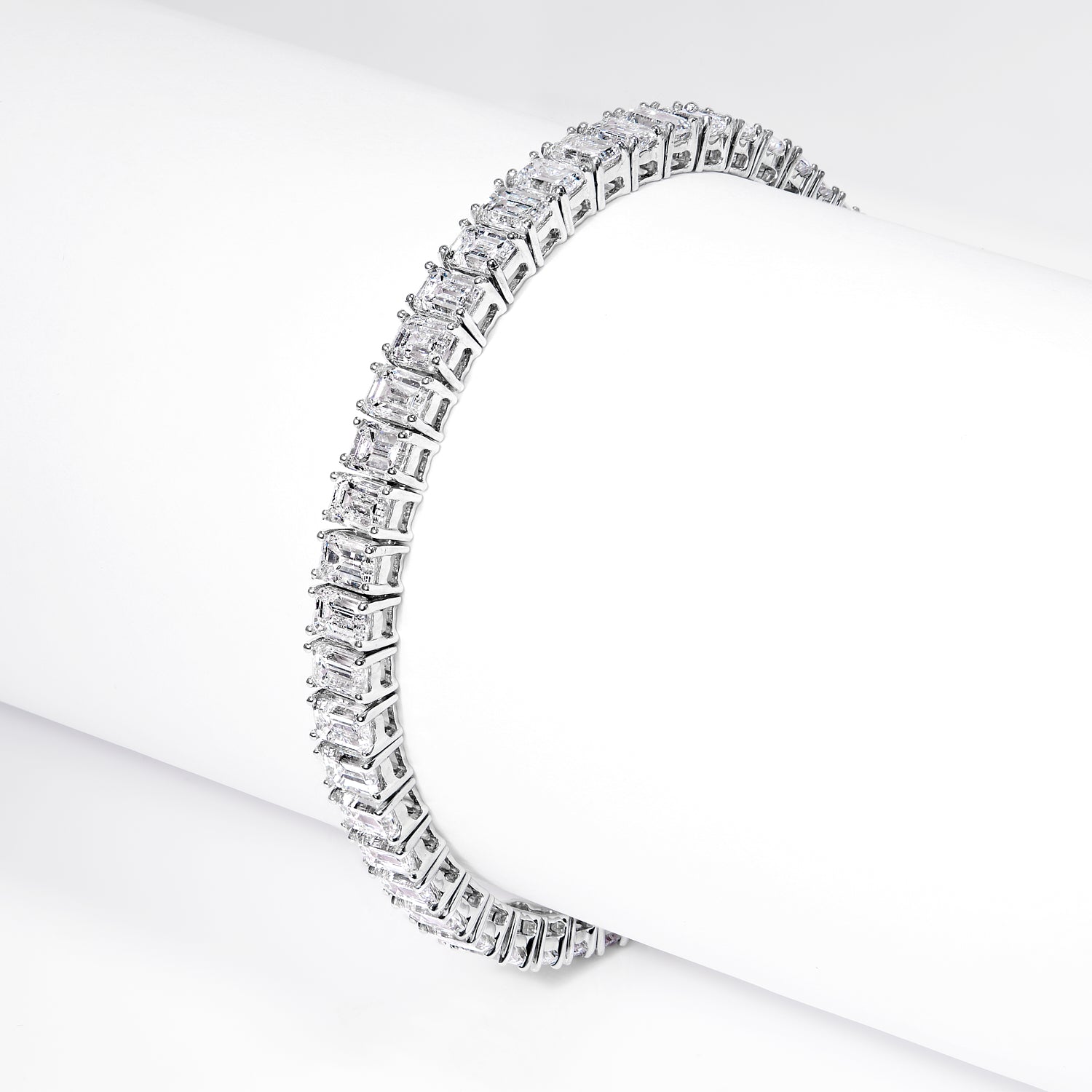 Ling 16 Carat Emerald Cut Lab-Grown Single Row Diamond Tennis Bracelet in 14k White Gold