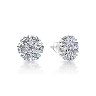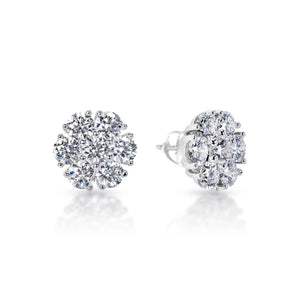 Londyn 4 Carats Round Brilliant Lab Grown Seven Stone Cluster Diamond Stud Earrings in 14k White Gold