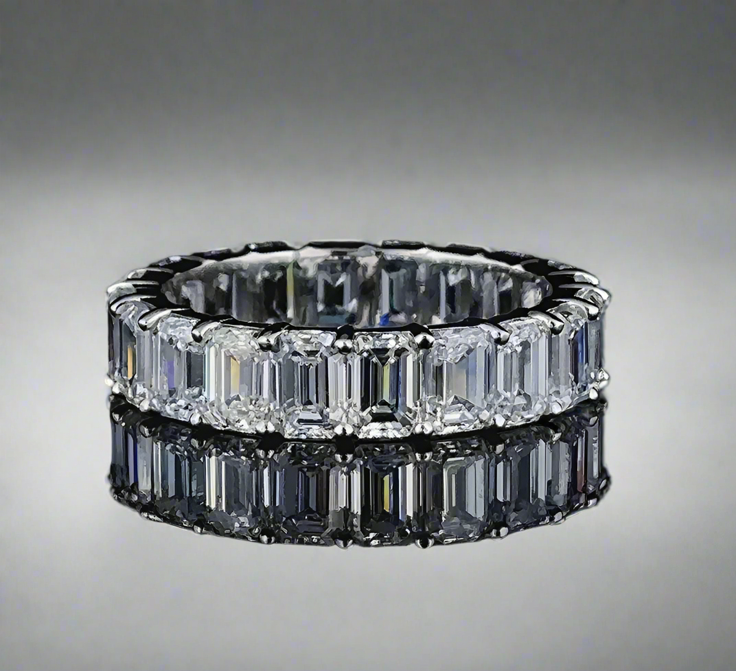 Loribelle 6.02 Carat Emerald Cut Lab Grown Diamond Eternity Band Ring in 14k White Gold