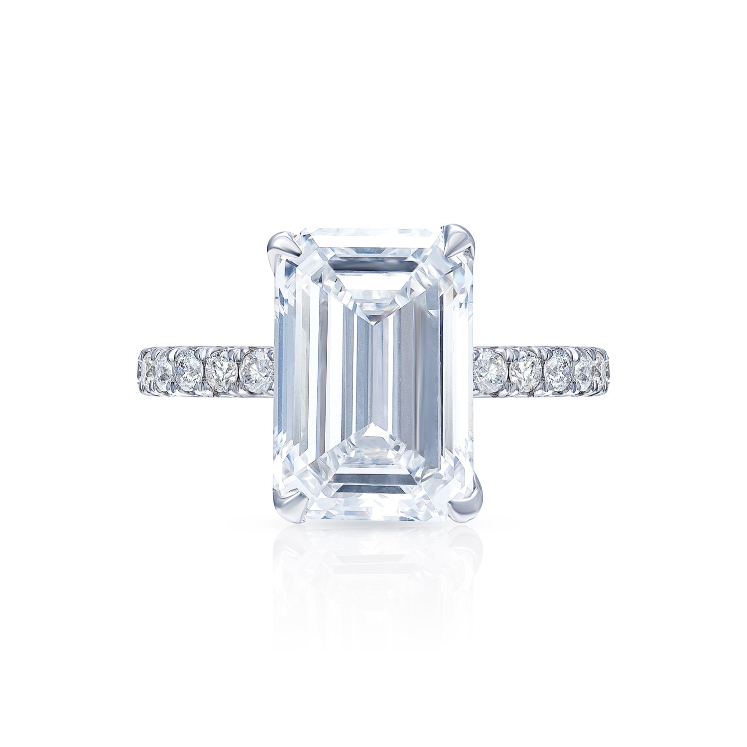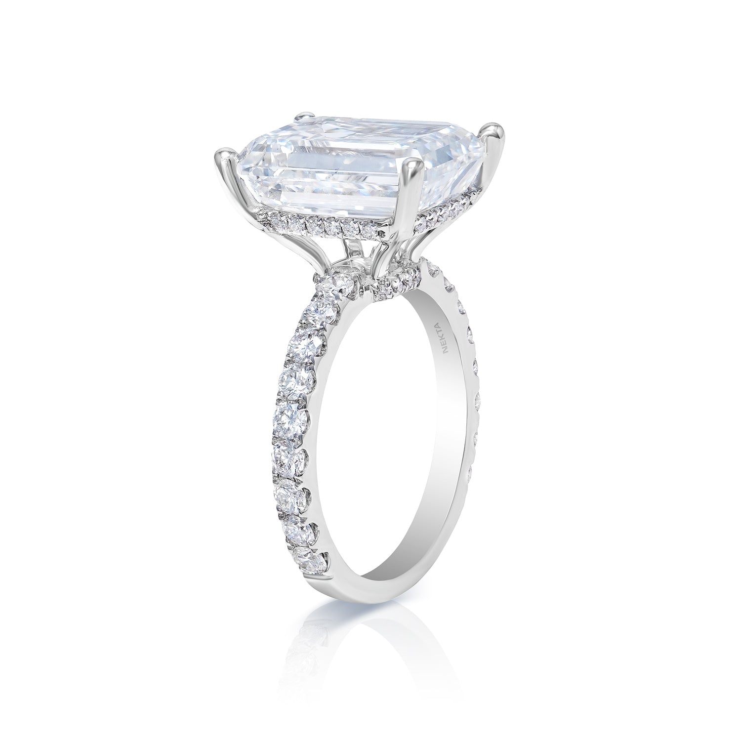 Louise 8 Carat F VS1 Emerald Cut Lab-Grown Diamond Engagement Ring in 18k White Gold. GIA Certified